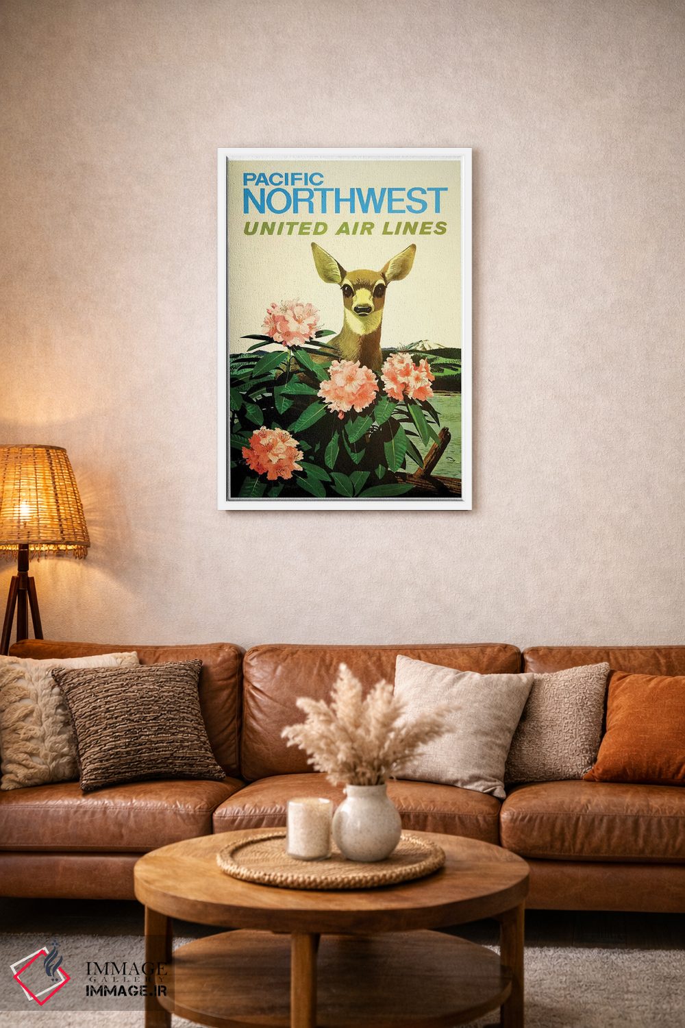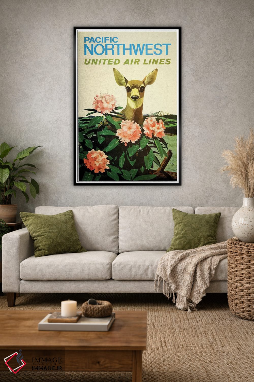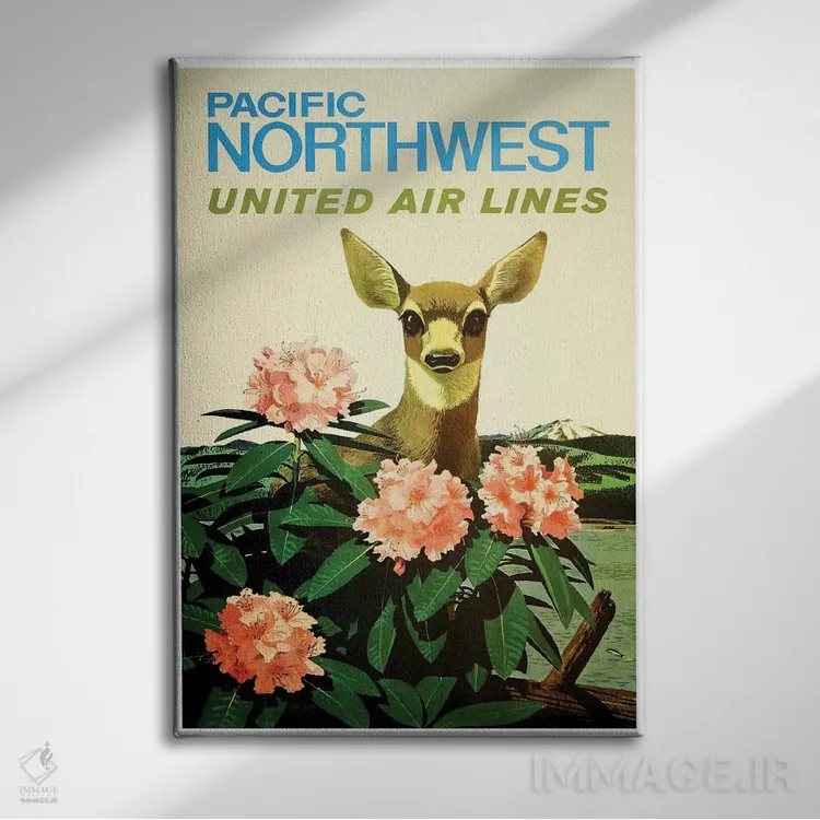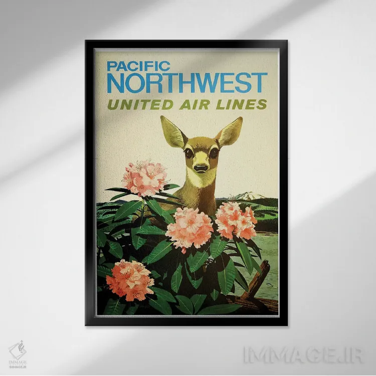 «شمال غرب آرام، خطوط هوایی یونایتد» اثرِ «هنرمند ناشناس» بهخاطر ساختار گرافیکیاش، کنار رنگهای خنثی و دکور صنعتی هم خوب جلوه میکند.