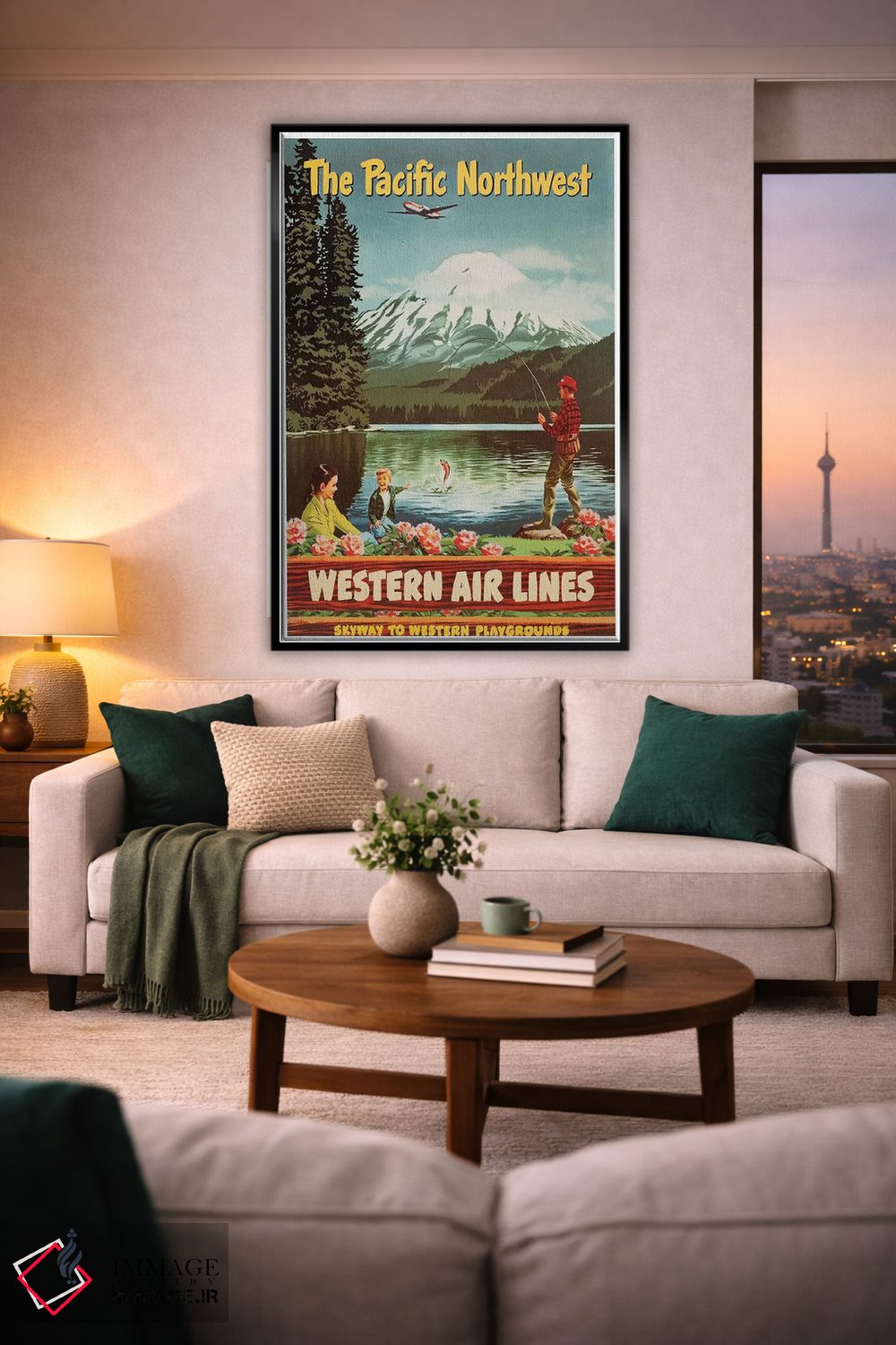 «شمال غربی اقیانوس آرام (آمریکای شمالی)» اثرِ «هنرمند ناشناس» یک اثر گرافیکیِ مرتب است که با قابهای ساده و چیدمانهای امروزی خوب مینشیند.