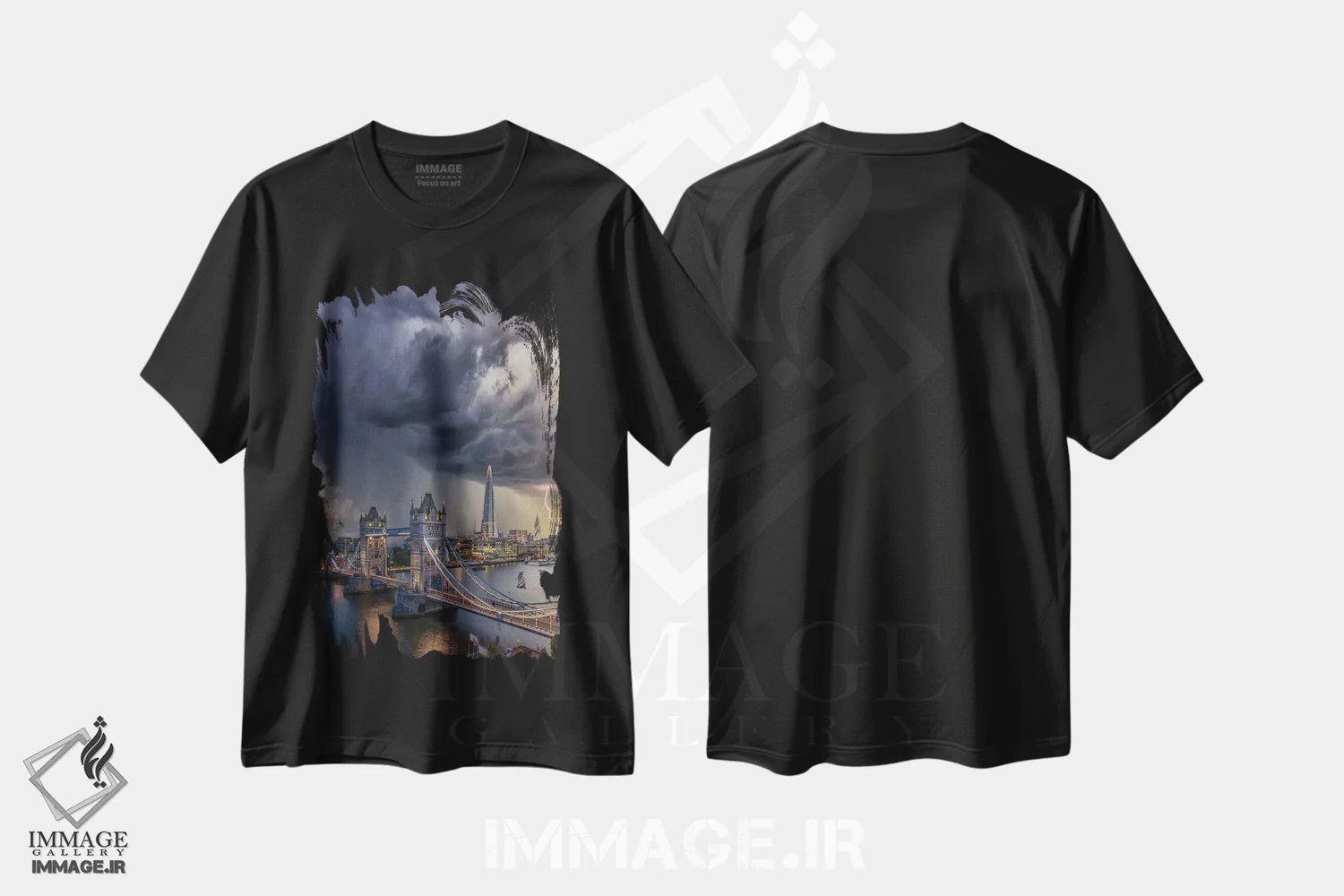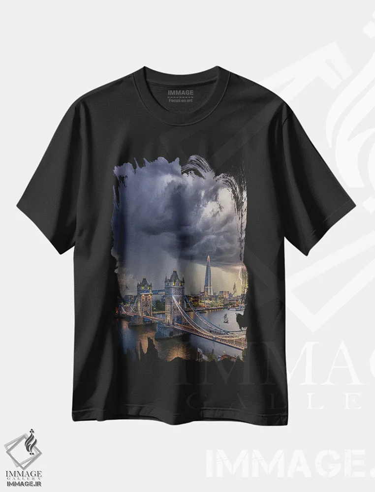 تیشرت مشکی طرح دار باران سیل آسای لندن، عکاسی هوایی اثر برنت شاونور | immage.ir