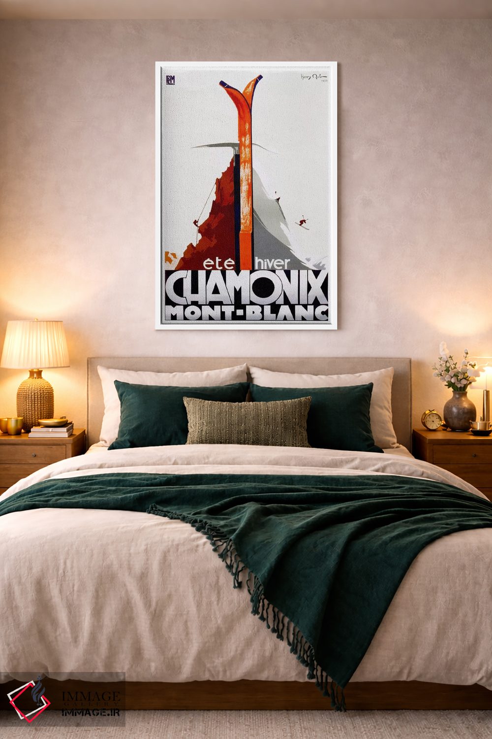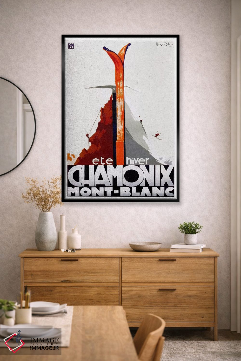 «شامونی—مونبلان یک» اثرِ «هنرمند ناشناس» بهخاطر ساختار گرافیکیاش، کنار رنگهای خنثی و دکور صنعتی هم خوب جلوه میکند.