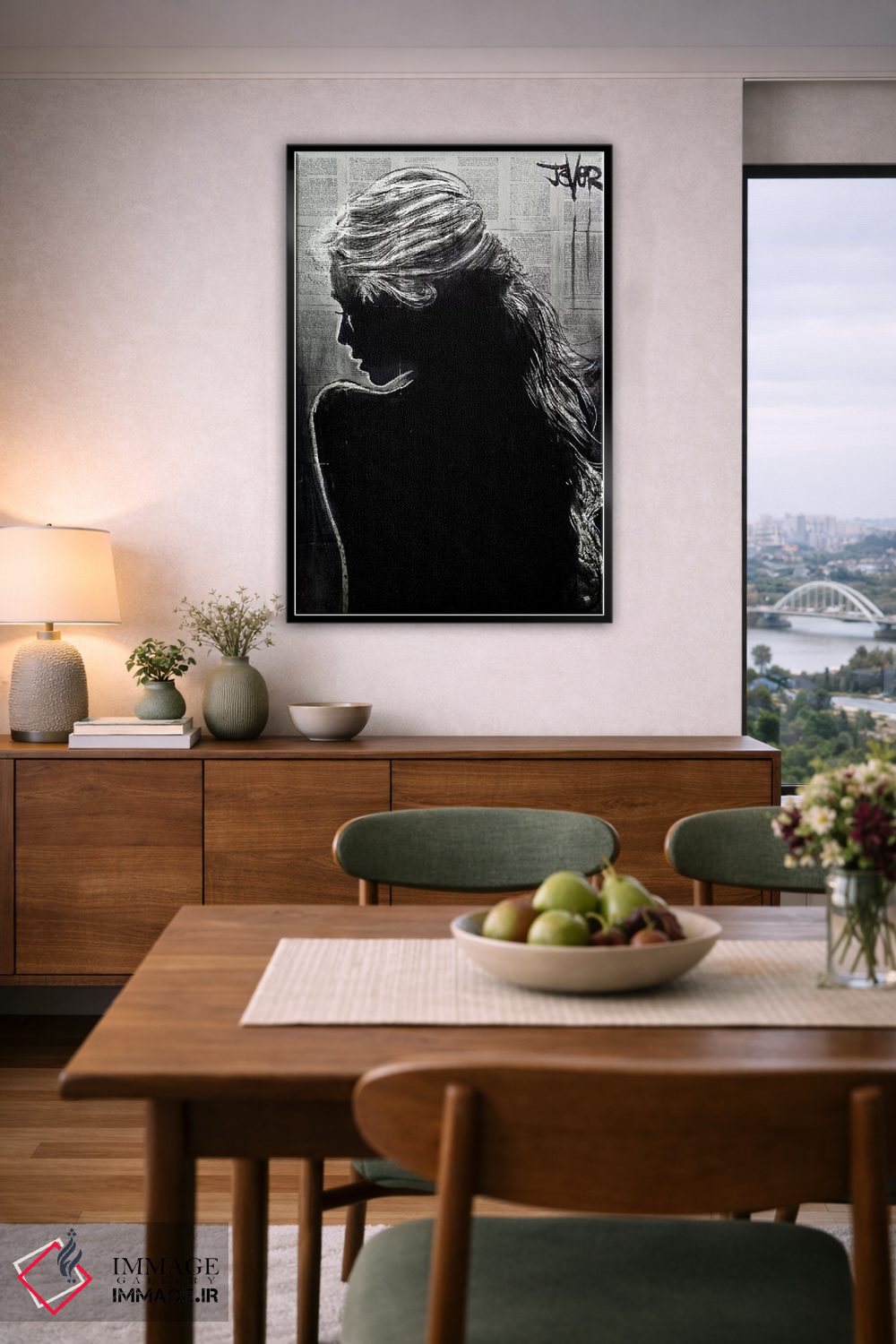 بوم گالری ایماژ طوری طراحی شده که اثر روی دیوار «پرداختشده» و حرفهای دیده شود—نه پرزرقوبرقِ بیپایه؛ بلکه دقیق و خوشپرداخت. بافت ظریف کنواس کمک میکند حس اثر هنری را در نگاه نزدیک نگه میدارد و نتیجه را یکدستتر میکند. کنترل تونها کمک میکند از تند شدن ناخواستهی رنگها جلوگیری میکند بهخصوص وقتی نور موضعی ملایم داشته باشید. حاصل کار، یک تابلو خوشنشین است که هم از دور اثرگذار است و هم از نزدیک خوشخوان.