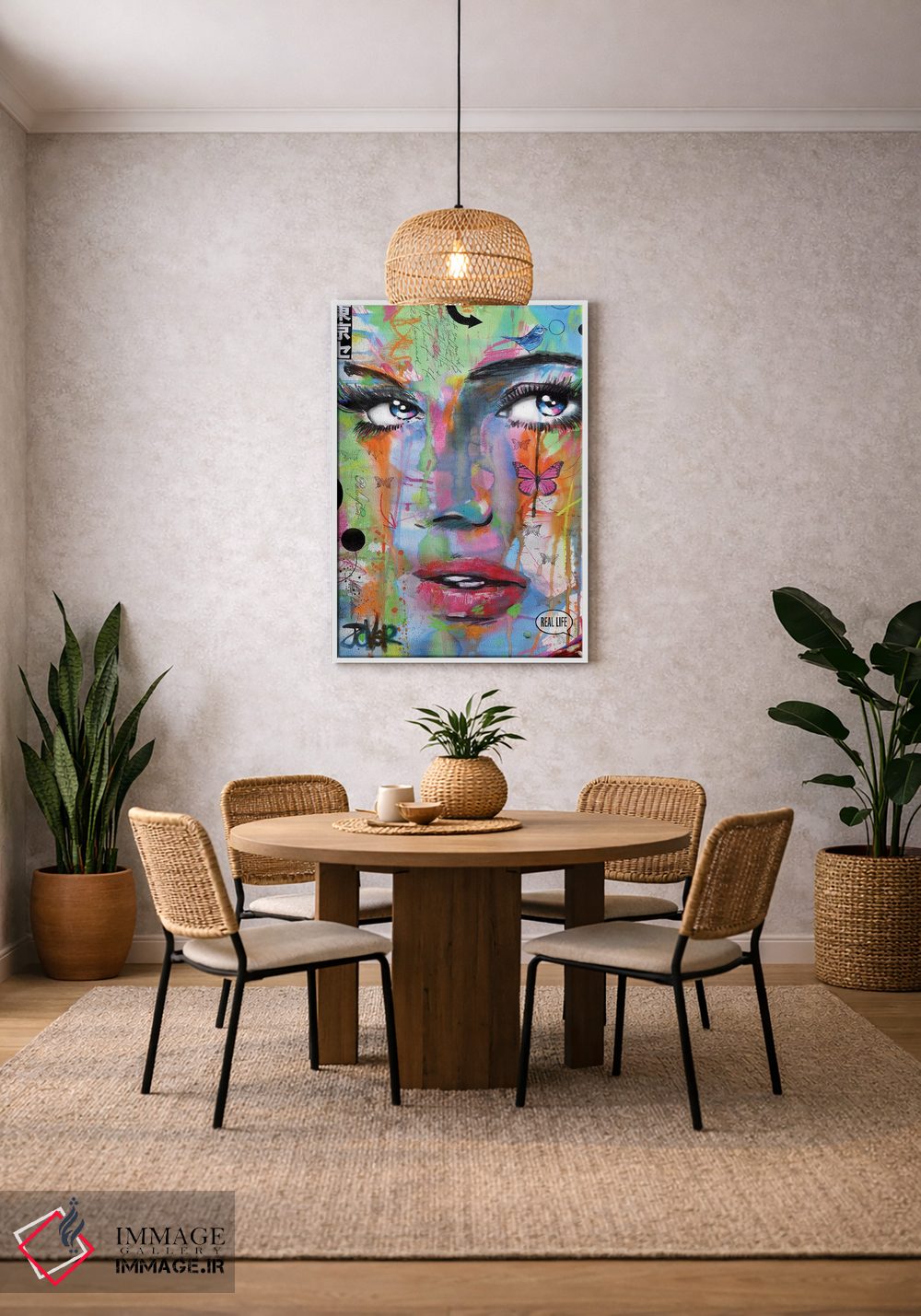طراحی بوم گالری ایماژ بهگونهای است که اثر روی دیوار «پرداختشده» و حرفهای دیده شود—نه پرزرقوبرقِ بیپایه؛ بلکه دقیق و خوشپرداخت. بافت ظریف کنواس کمک میکند حس اثر هنری را در نگاه نزدیک نگه میدارد. قابپذیری باعث میشود قاب مناسب مرز بصری تمیزتری به اثر میدهد و برای محیطهای رسمیتر هم انتخاب مطمئنی است. حاصل کار، یک تابلو خوشنشین است که هم از دور اثرگذار است و هم از نزدیک خوشخوان؛ در فضاهای کاری، این نظم بصری خیلی به چشم میآید.