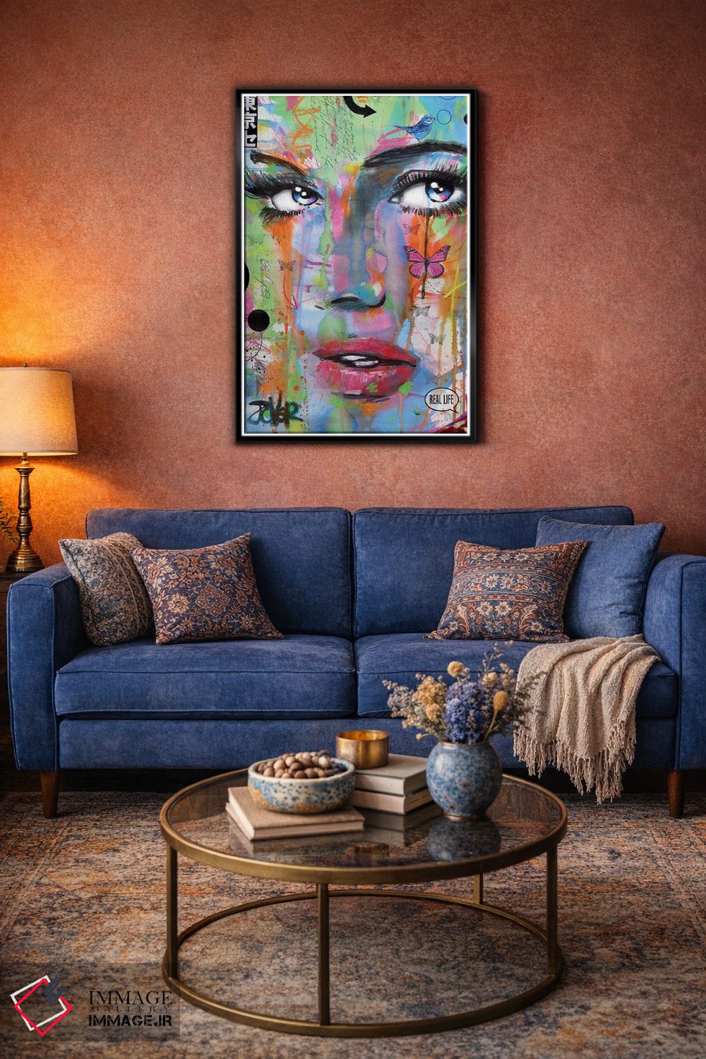 براساس پالت ترکیبی اثر، قاب تیک گرم (چوبی) پیشنهاد اول است و مشکی مات (فریم متوسط) مکمل. برای سفارشهای پروژهای با ابعاد و قابهای اختصاصی با ایماژ در تماس باشید.