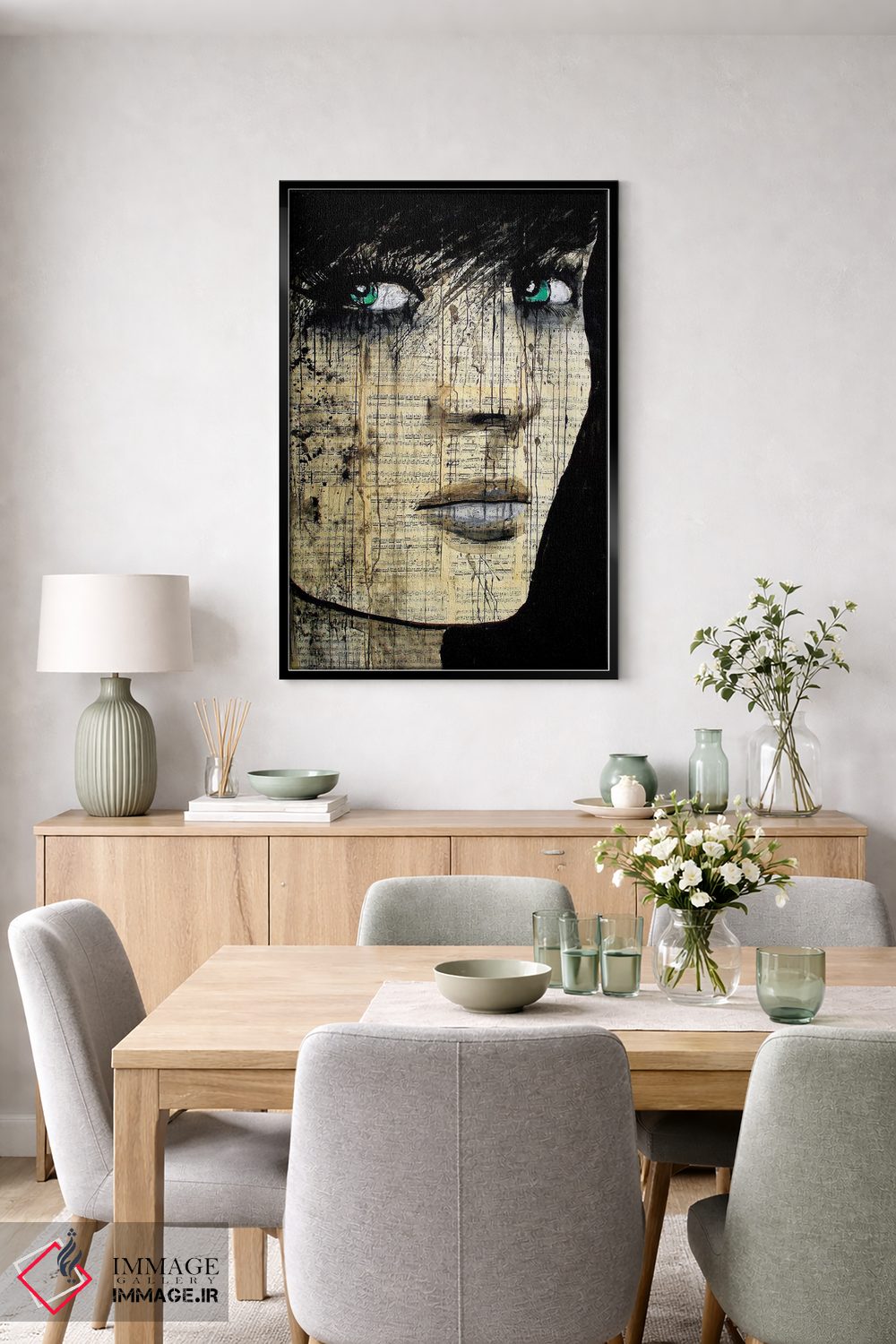 براساس پالت گرم اثر، قاب بلوط روشن (چوبی) پیشنهاد اول است و استخوانی ملایم مکمل. برای سفارشهای پروژهای با ابعاد و قابهای اختصاصی با ایماژ در تماس باشید.