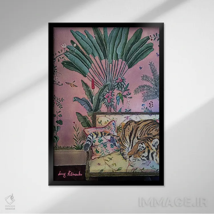 براساس پالت ترکیبی اثر، قاب بلوط روشن (چوبی) پیشنهاد اول است و استخوانی ملایم مکمل. برای سفارشهای پروژهای با ابعاد و قابهای اختصاصی با ایماژ در تماس باشید.