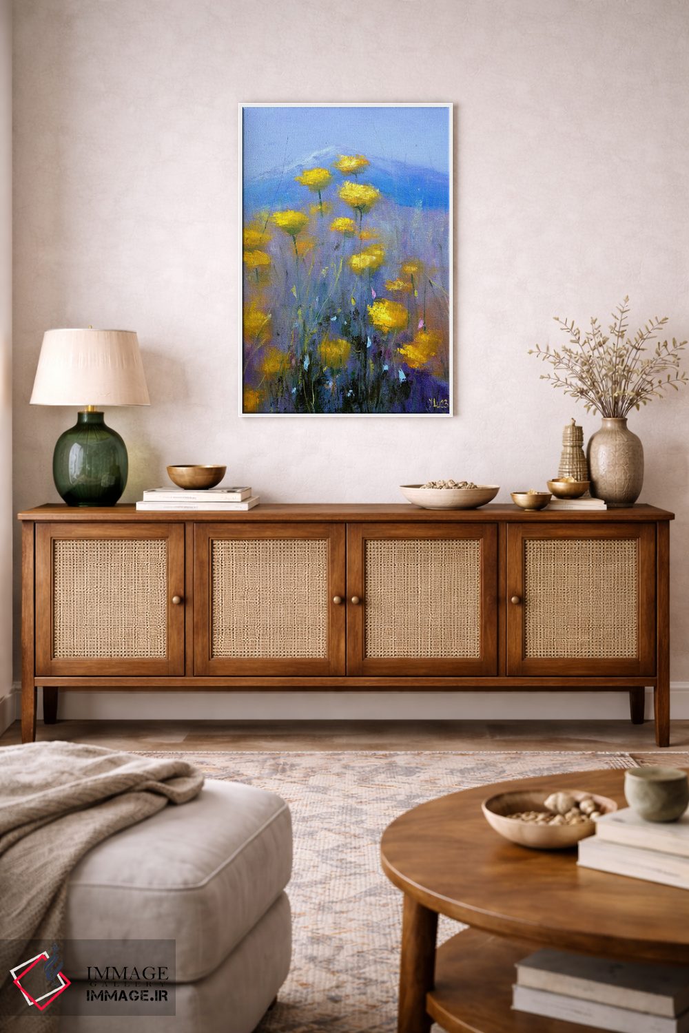 اگر ابعاد دیوار را دارید، با ایماژ از طریق تماس—با—ما/">تماس با ما در ارتباط باشید تا انتخاب نهایی دقیقتر انجام شود. در صورتی که میخواهید اثر در فضا «مینیمال و آرام» دیده شود، انتخاب اندازه درست تفاوت ایجاد میکند و چیدمان را یکدستتر نشان میدهد.