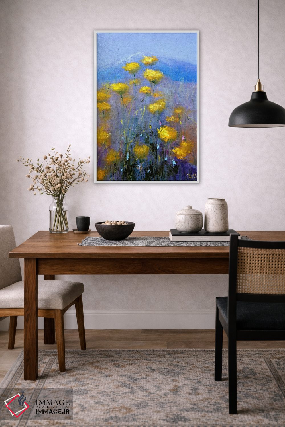 طراحی بوم گالری ایماژ بهگونهای است که اثر روی دیوار «پرداختشده» و حرفهای دیده شود—نه پرزرقوبرقِ بیپایه؛ بلکه دقیق و خوشپرداخت. بافت ظریف کنواس باعث میشود حس اثر هنری را در نگاه نزدیک نگه میدارد بدون اغراق؛ فقط دقیقتر. قابپذیری کمک میکند هماهنگی قاب با پالت رنگ جلوه را تقویت میکند و نتیجه را یکدستتر میکند. این کیفیت برای چیدمانهای دقیقتر و پروژههای حرفهای خودش را بهتر نشان میدهد؛ اگر محیط مینیمال است، همین پرداخت تمیز کافی است.