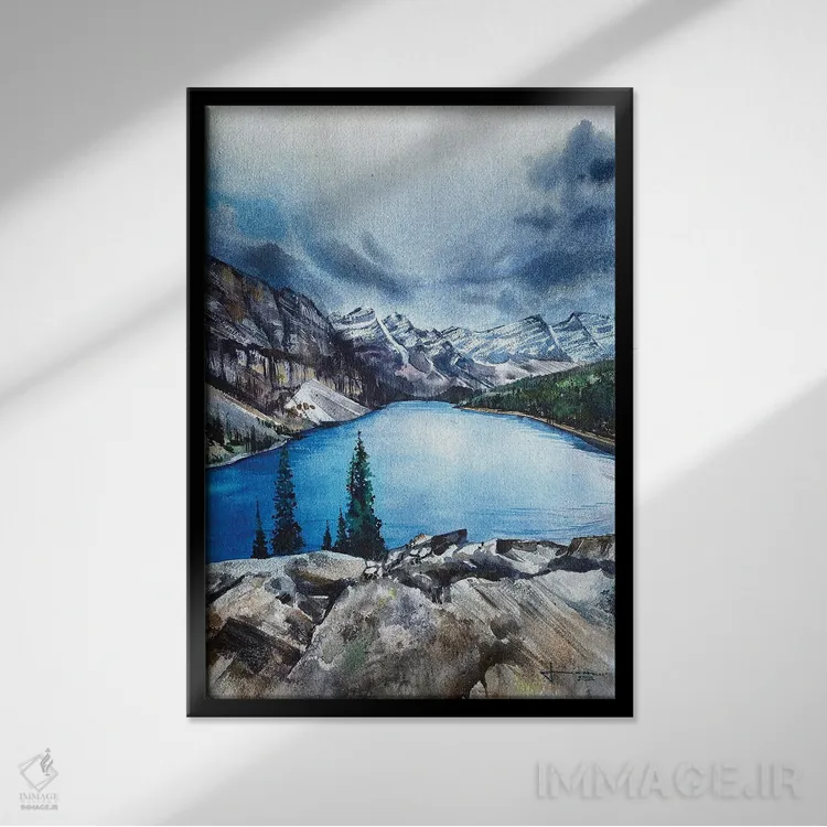 براساس پالت سرد اثر، قاب سفید مات (فریم باریک) پیشنهاد اول است و نقرهای برسخورده (متالیک) مکمل. برای سفارشهای پروژهای با ابعاد و قابهای اختصاصی با ایماژ در تماس باشید.