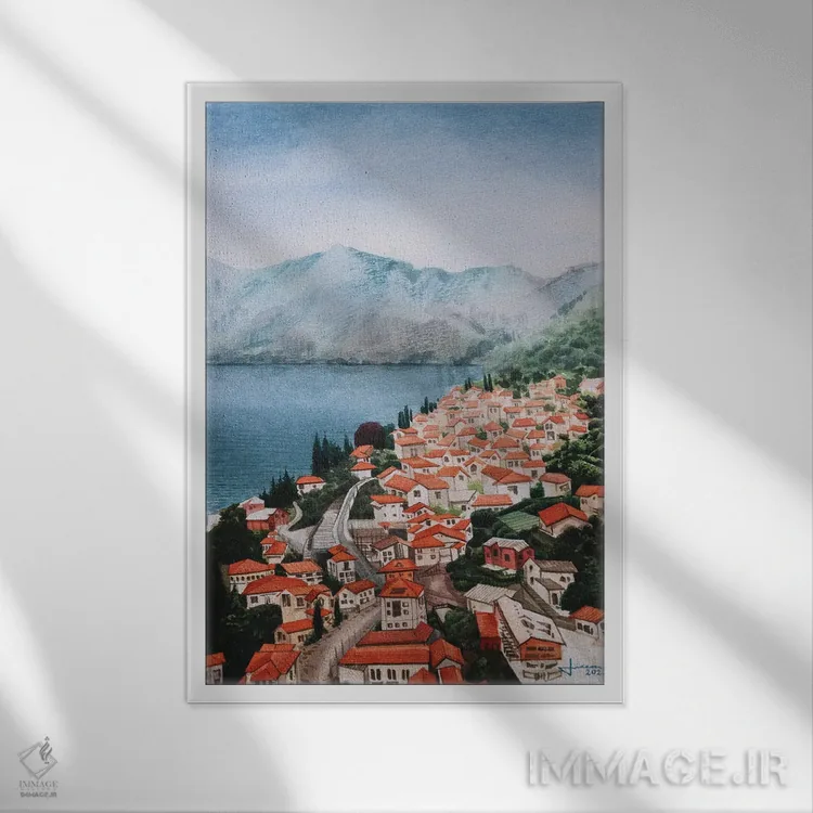 براساس پالت ترکیبی اثر، قاب تیک گرم (چوبی) پیشنهاد اول است و مشکی مات (فریم متوسط) مکمل. برای سفارشهای پروژهای با ابعاد و قابهای اختصاصی با ایماژ در تماس باشید.