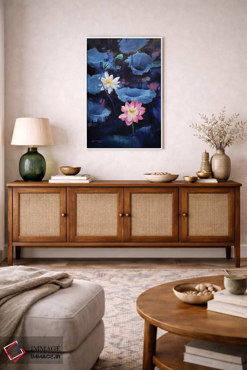 این اثر با عنوان «تازه شدن» اثرِ «لیام کوموات» فضا را نرمتر و مهماننوازتر میکند؛ برای کافهها و فضاهای آرام انتخابی خوشسلیقه است. حضورش آرام است، اما بیاثر نیست.