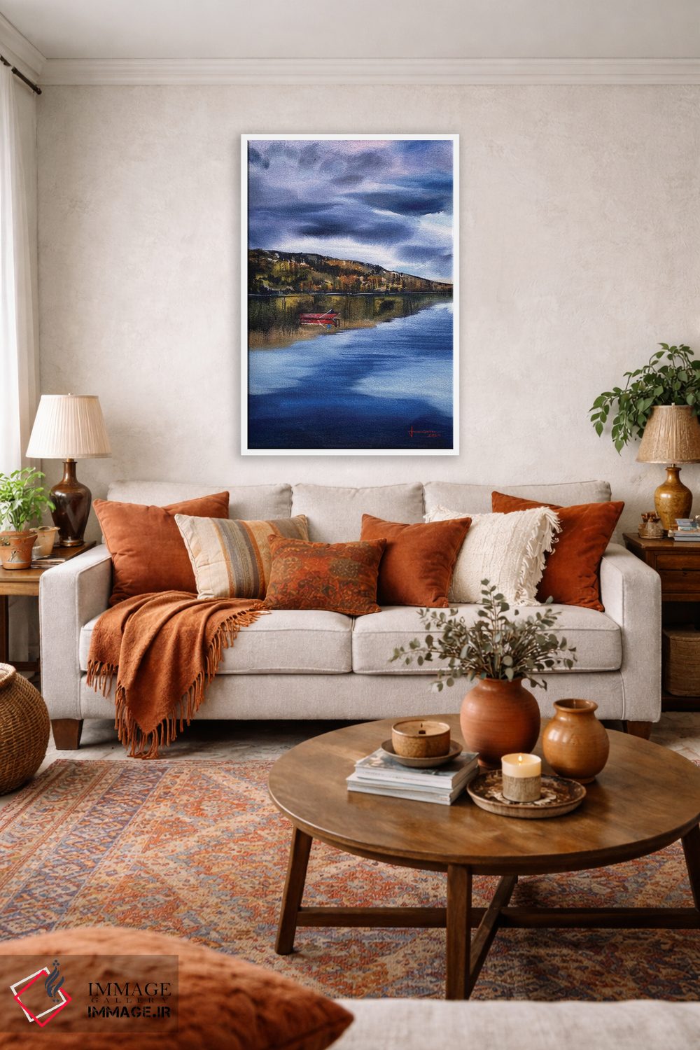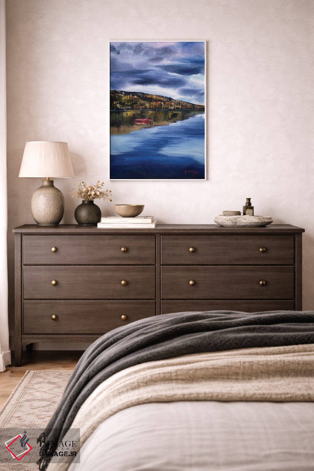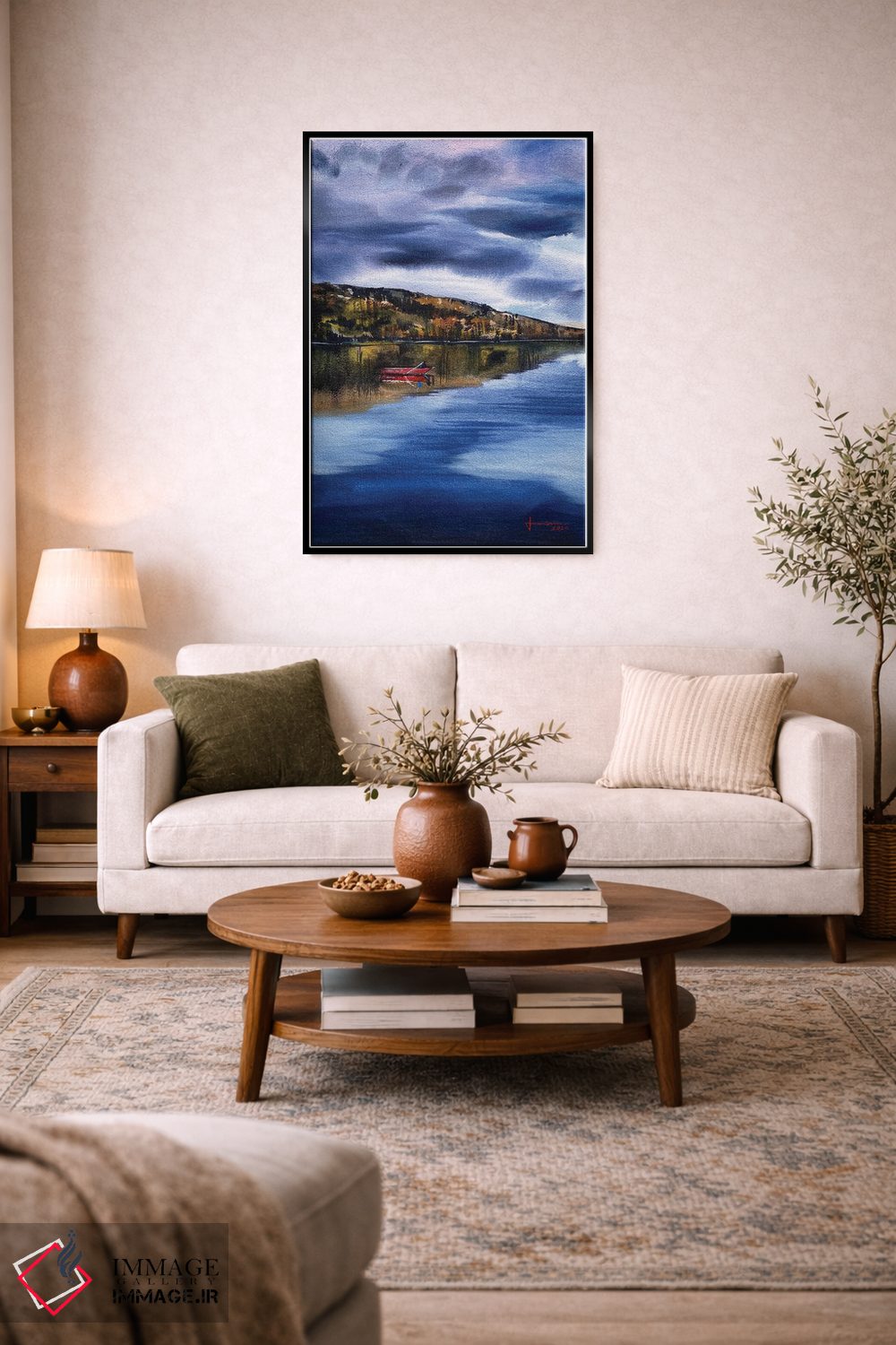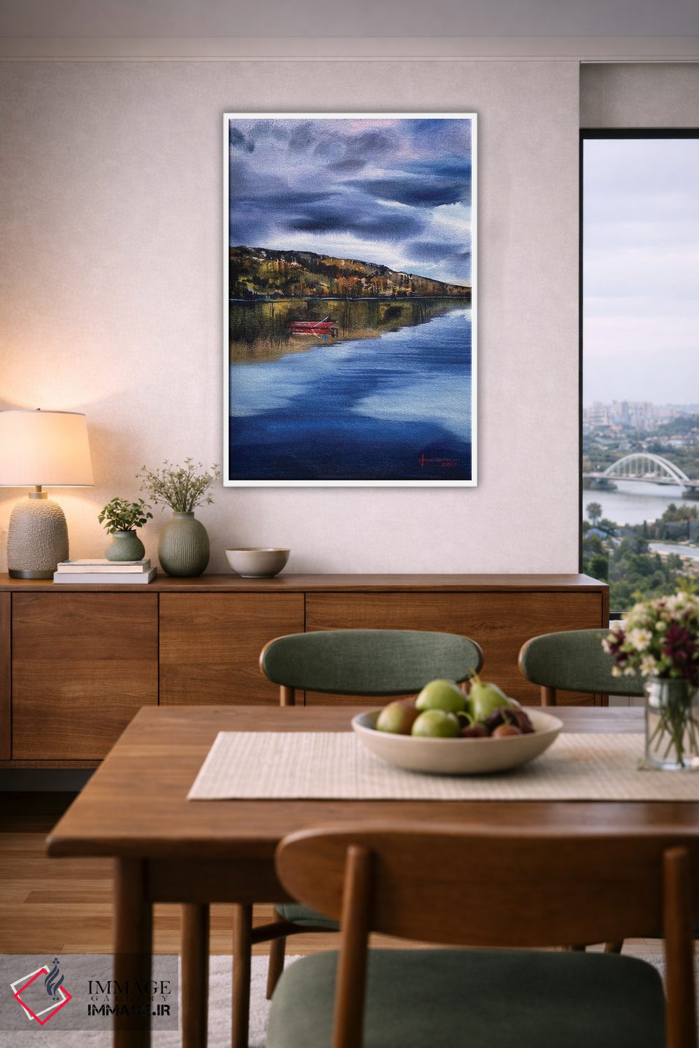 «تالاب» اثرِ «لیام کوموات» با تمِ این اثر و حالوهوای لژ، برای اتاق پذیرایی و فضای غذاخوری انتخابی هماهنگ است.