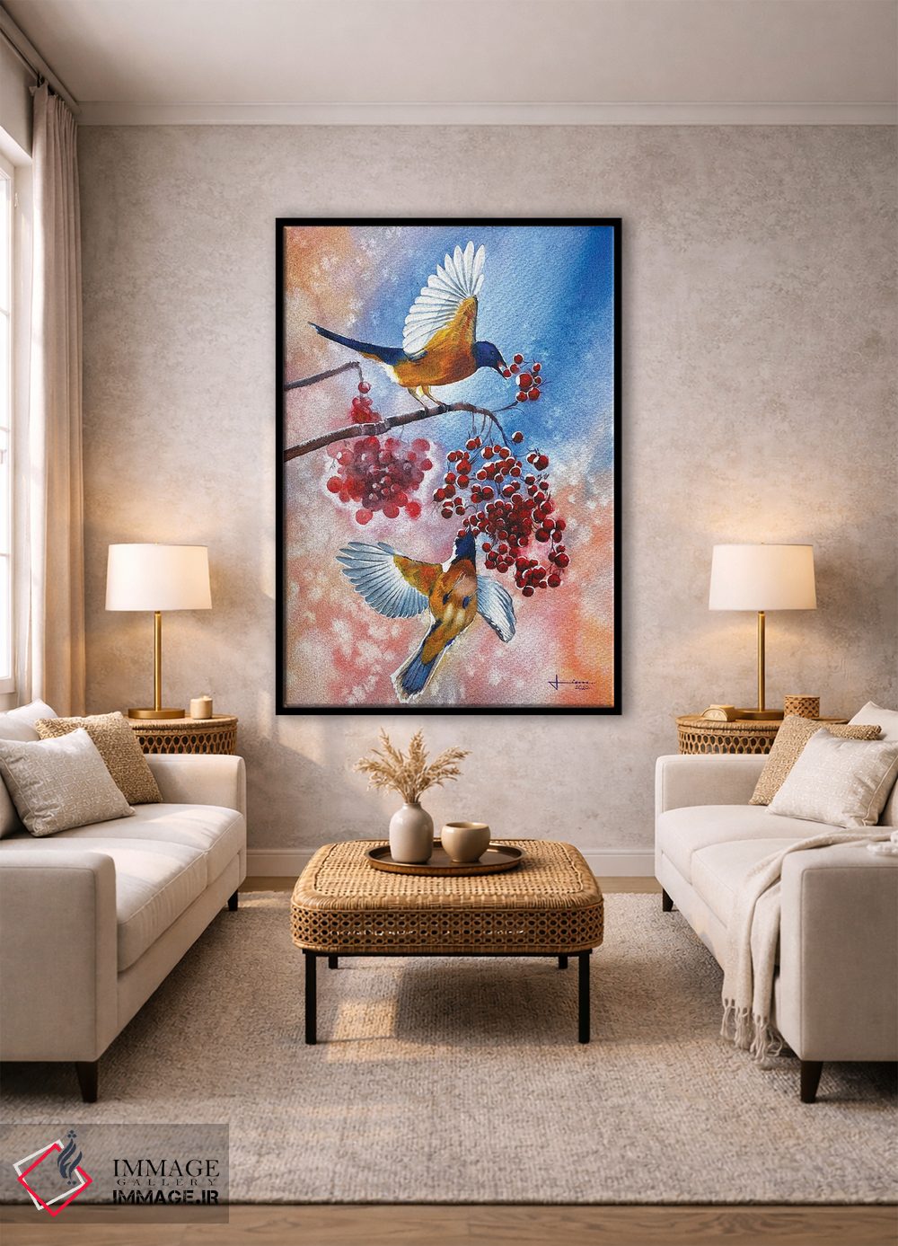 براساس پالت ترکیبی اثر، قاب تیک گرم (چوبی) پیشنهاد اول است و مشکی مات (فریم متوسط) مکمل. برای سفارشهای پروژهای با ابعاد و قابهای اختصاصی با ایماژ در تماس باشید.