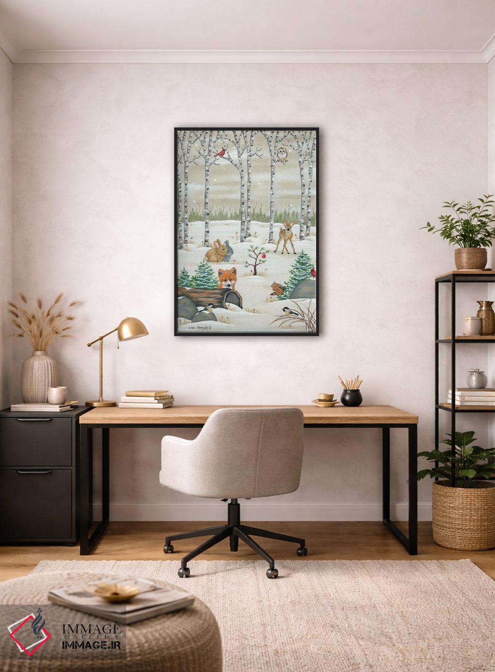 براساس پالت ترکیبی اثر، قاب بلوط روشن (چوبی) پیشنهاد اول است و استخوانی ملایم مکمل. برای سفارشهای پروژهای با ابعاد و قابهای اختصاصی با ایماژ در تماس باشید.