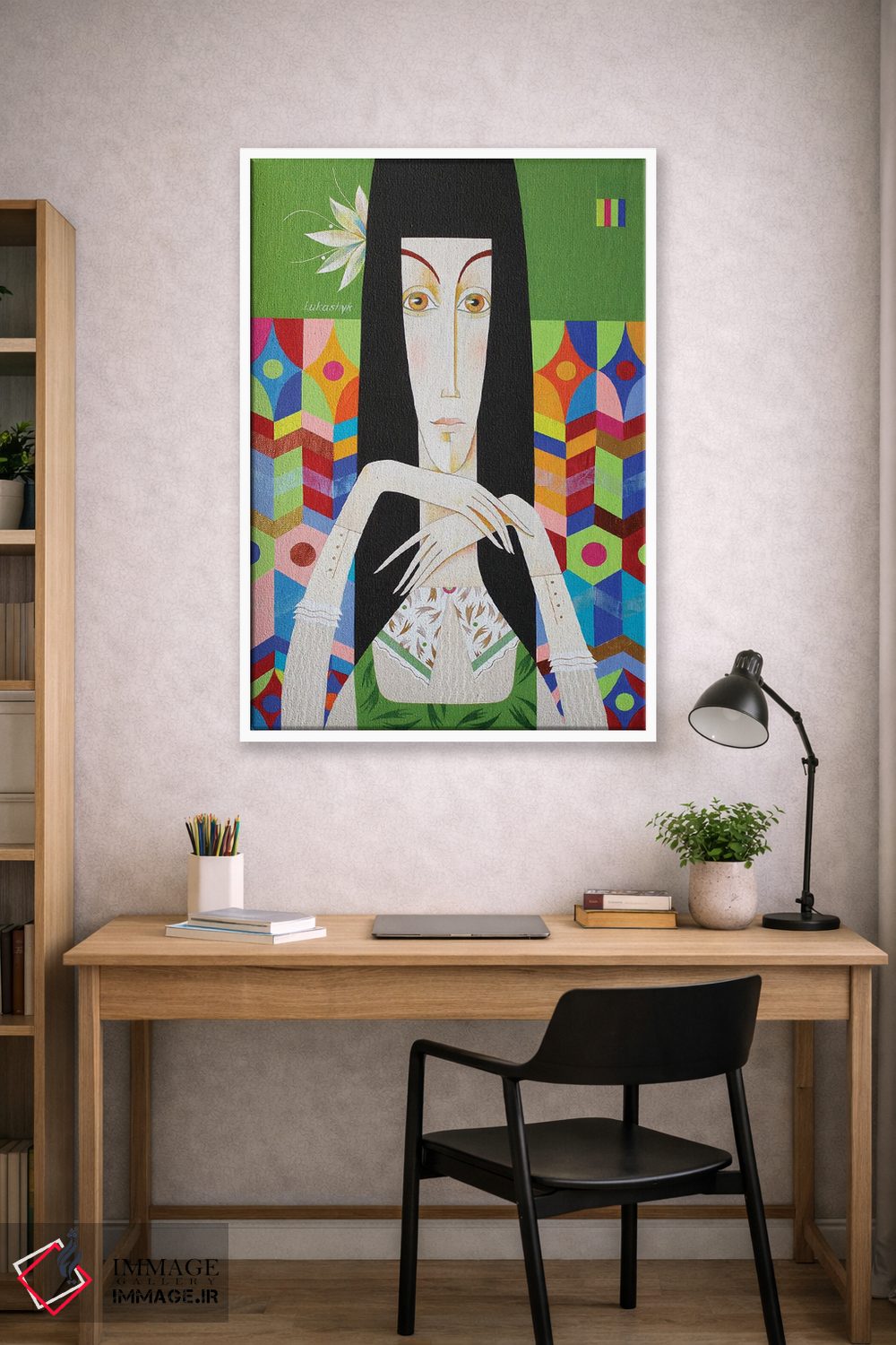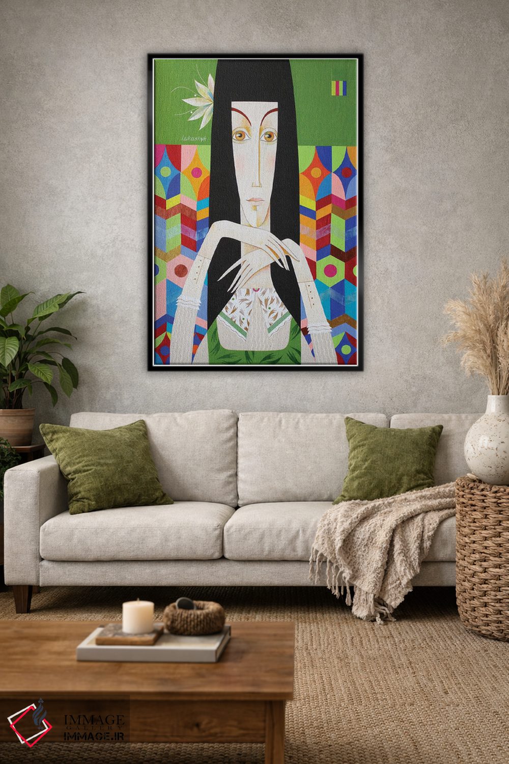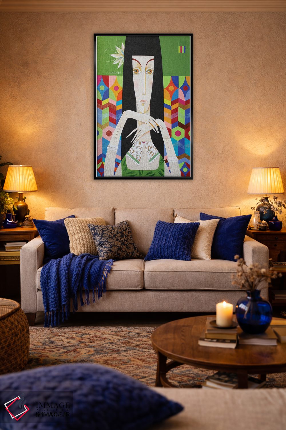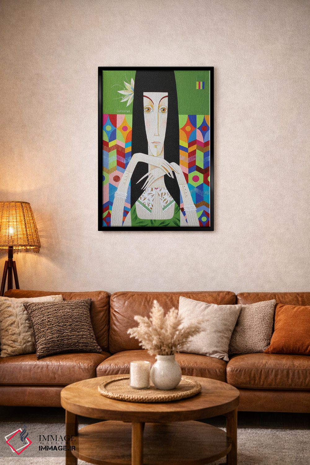 براساس پالت ترکیبی اثر، قاب تیک گرم (چوبی) پیشنهاد اول است و مشکی مات (فریم متوسط) مکمل. برای سفارشهای پروژهای با ابعاد و قابهای اختصاصی با ایماژ در تماس باشید.