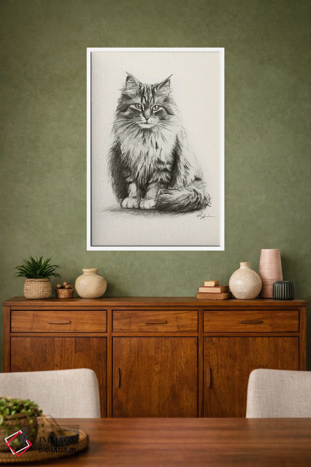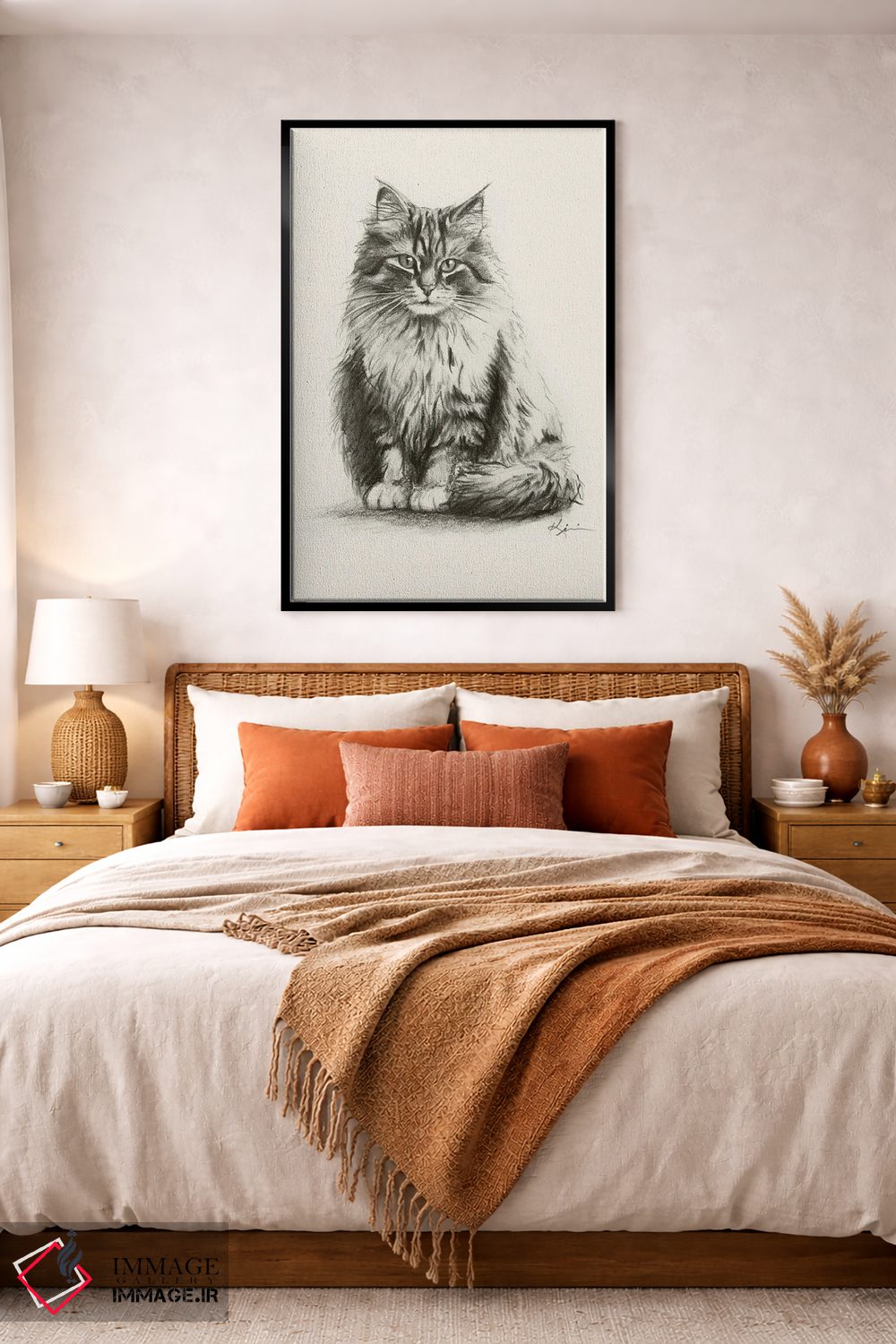 برای اتاقی که به یک عنصر دوستداشتنی نیاز دارد، «طرح اسکچ گربهٔ سیبری» اثرِ «لینزی کیوی» به فضا، گرمیِ ملایم اضافه میکند؛ برای فضاهای روستیک یا بوهو انتخابی خوشسلیقه است. برای دیوار گالریوار هم گزینهٔ خوبیست.