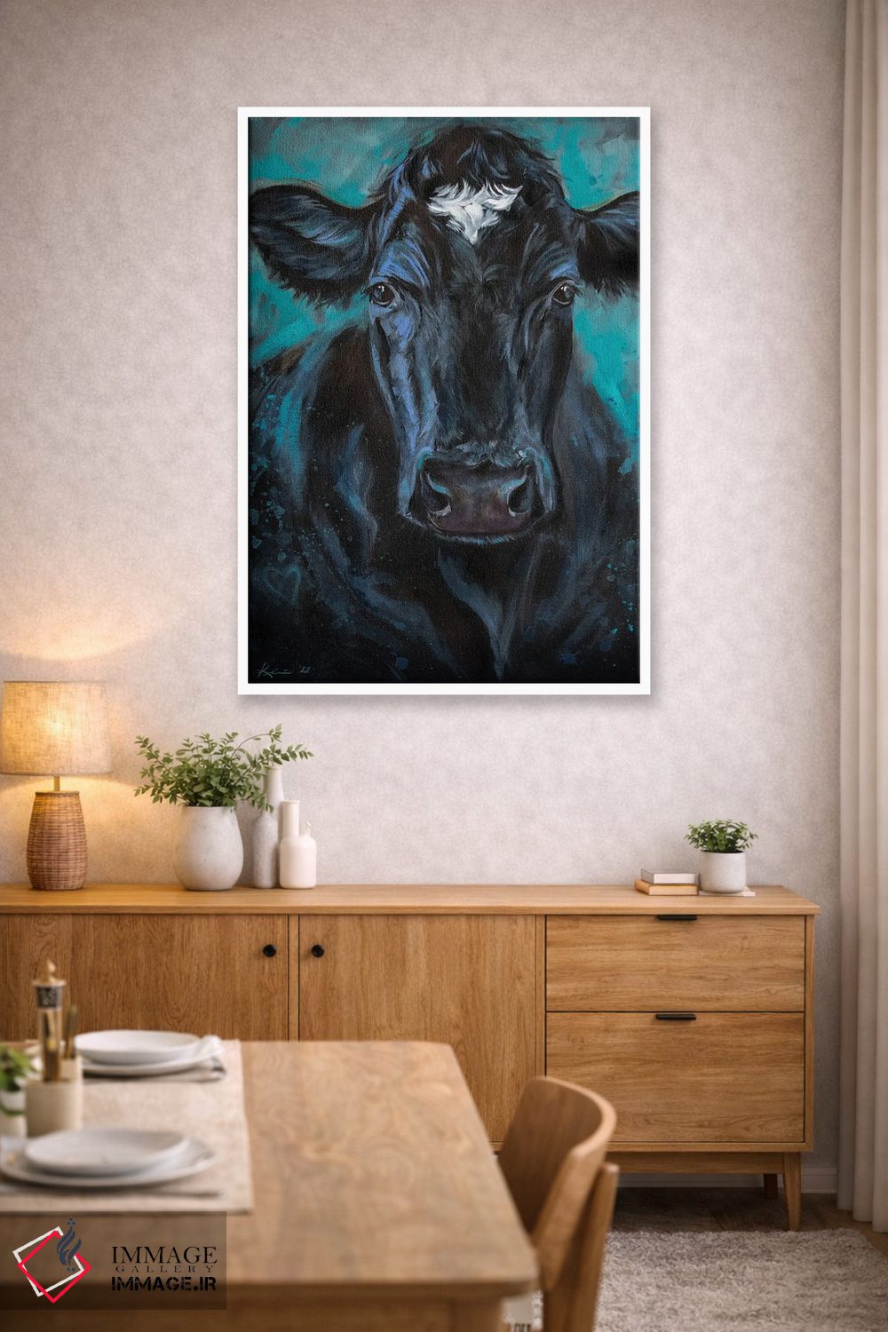 تابلو دکوراتیو گاو سیاه اثر لینزی کیوی - نمای پرسپکتیو محصول