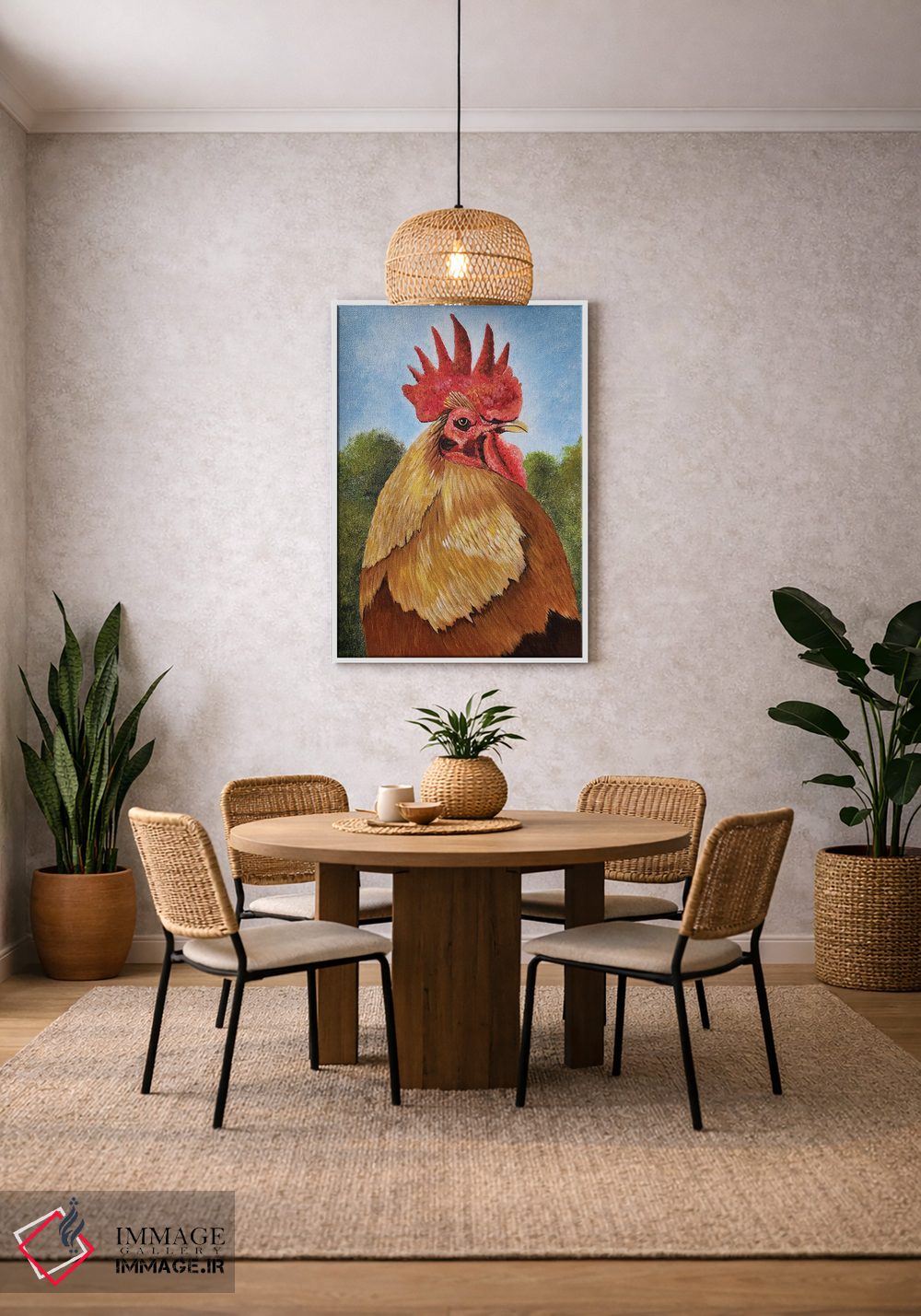 برای اتاقی که به یک عنصر دوستداشتنی نیاز دارد، «سلطان لانه (خروس برتر)» اثرِ «شریل میلر لَکی» در کنار رنگهای خنثی، تضاد دلچسبی میسازد؛ برای اتاق کودک (بدون لحن کودکانه) انتخابی خوشسلیقه است. حسش صمیمی است، اما کیفیتش جدی و خوشپرداخت.