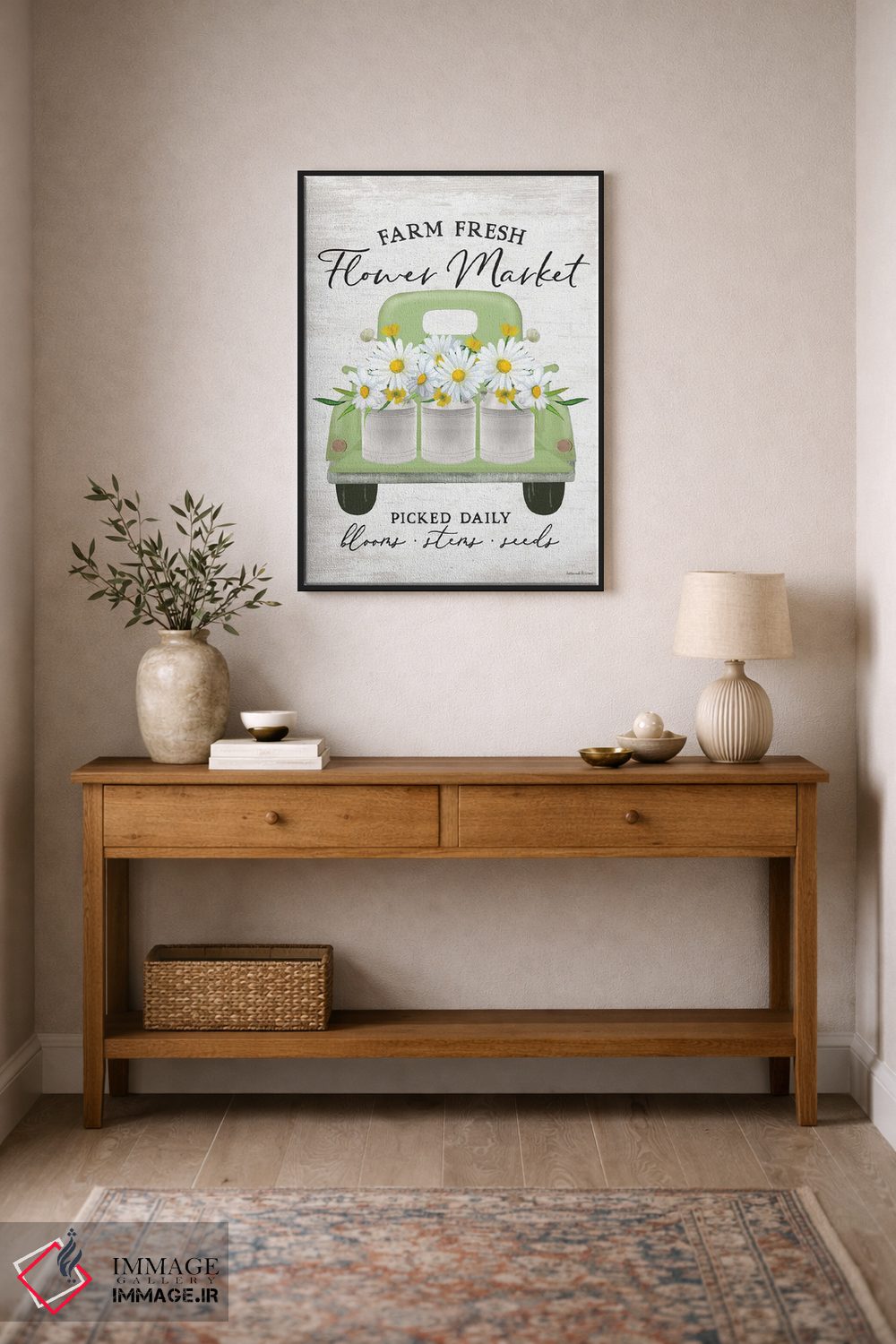 براساس پالت ترکیبی اثر، قاب بلوط روشن (چوبی) پیشنهاد اول است و استخوانی ملایم مکمل. برای سفارشهای پروژهای با ابعاد و قابهای اختصاصی با ایماژ در تماس باشید.