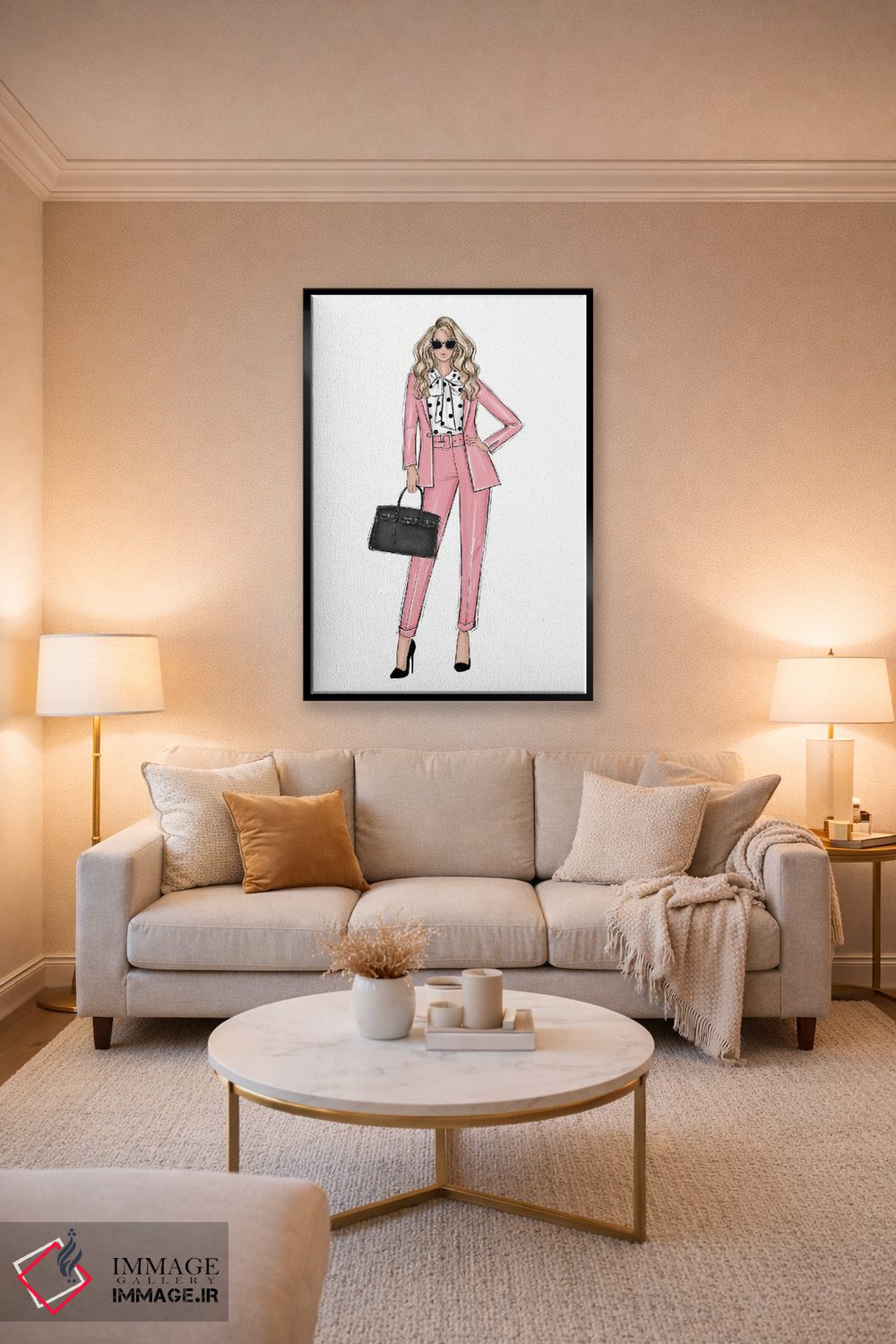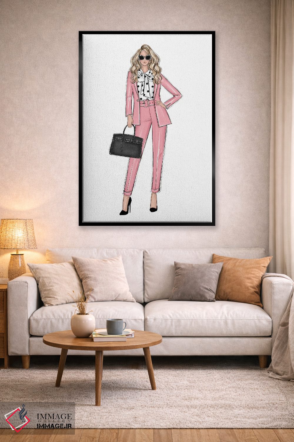 یک تابلوی مد—محور که با روایتی مینیمال و مرتب، حسِ سلیقه و انتخاب را به فضا اضافه میکند اثرِ «لالانا آرتس (استودیو هنری)».