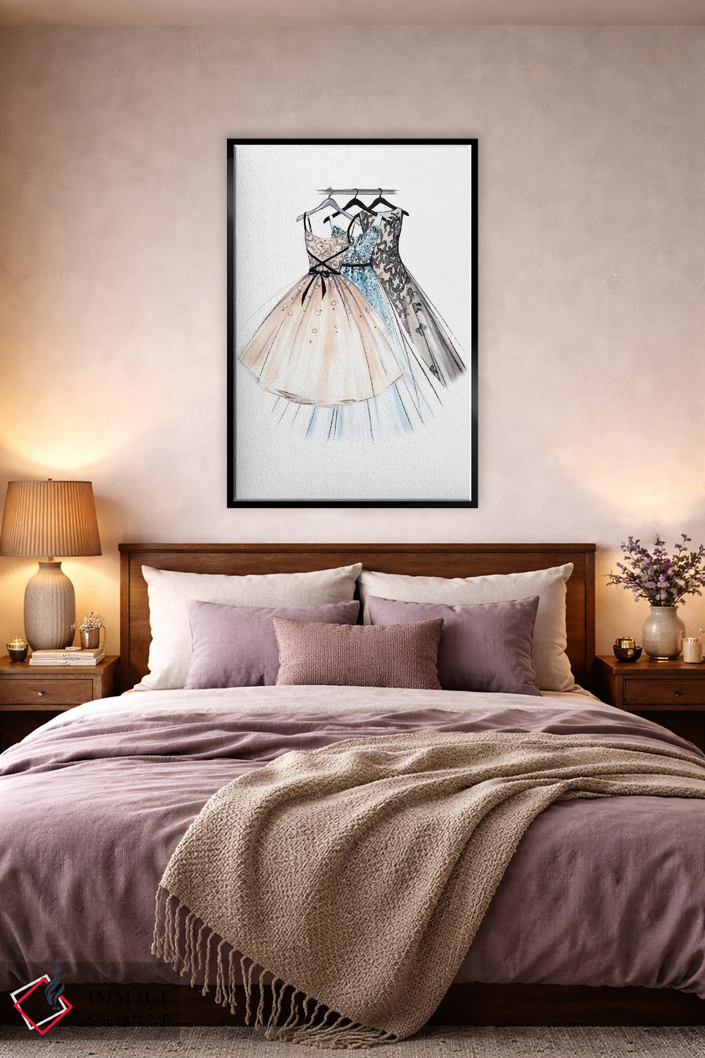 براساس پالت خنثی اثر، قاب بلوط روشن (چوبی) پیشنهاد اول است و استخوانی ملایم مکمل. برای سفارشهای پروژهای با ابعاد و قابهای اختصاصی با ایماژ در تماس باشید.