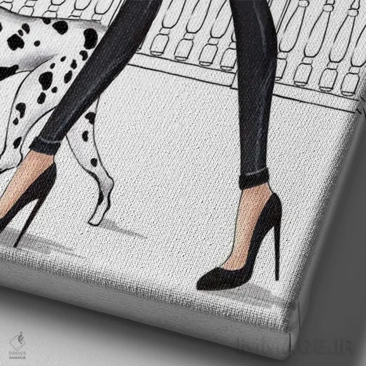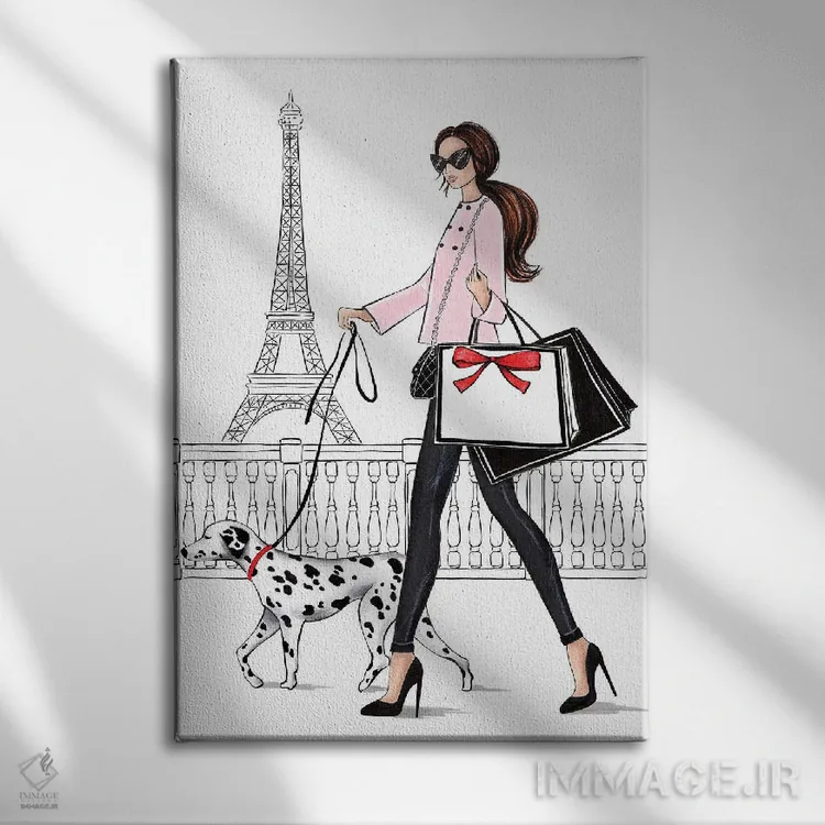 تابلو دکوراتیو دختر مو قهوه ای با سگ دالمیشن در پاریس اثر لالانا آرتس