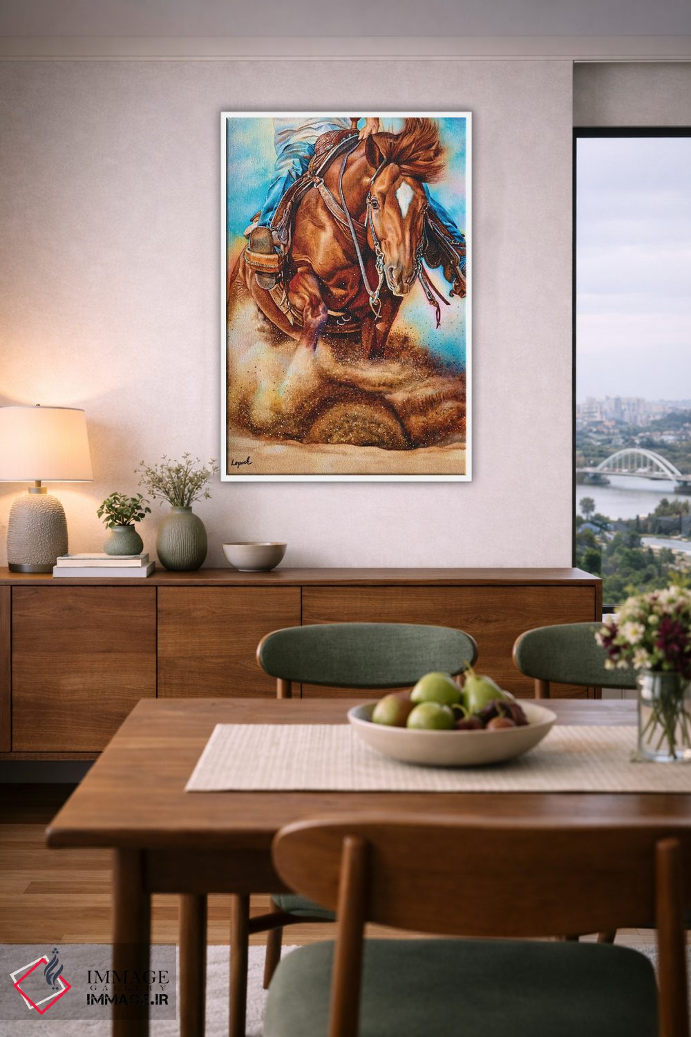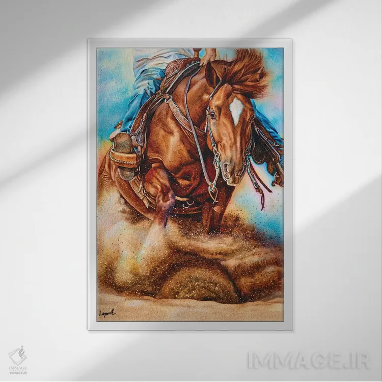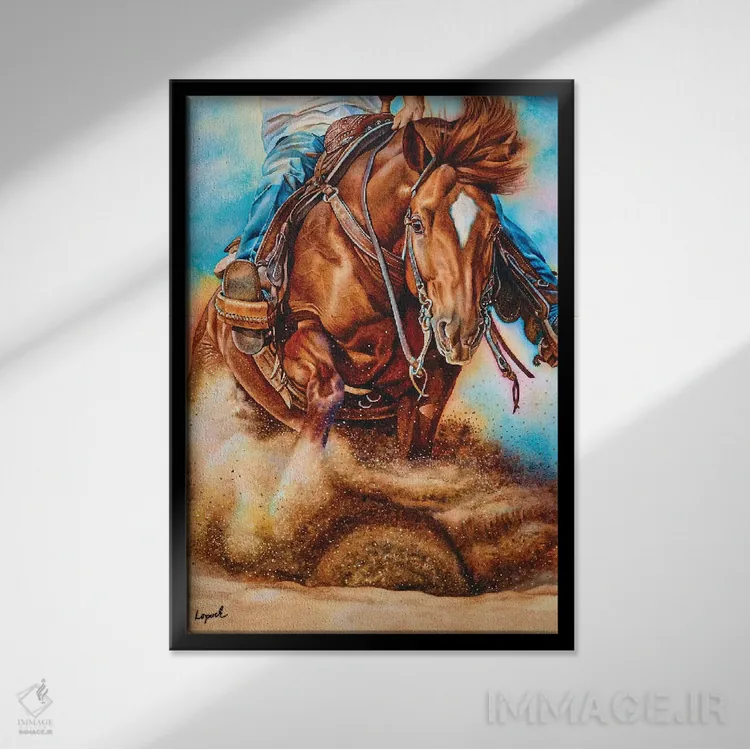 براساس پالت ترکیبی اثر، قاب تیک گرم (چوبی) پیشنهاد اول است و مشکی مات (فریم متوسط) مکمل. برای سفارشهای پروژهای با ابعاد و قابهای اختصاصی با ایماژ در تماس باشید.