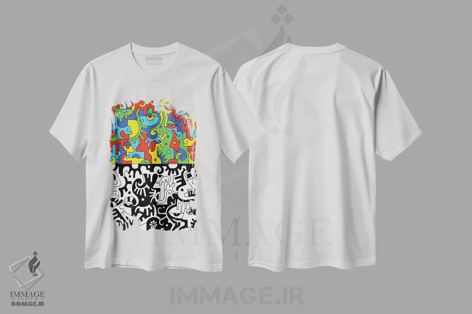 تیشرت سفید طرح دار رنگ به سیاهی اثر بیلی آرتیست | immage.ir