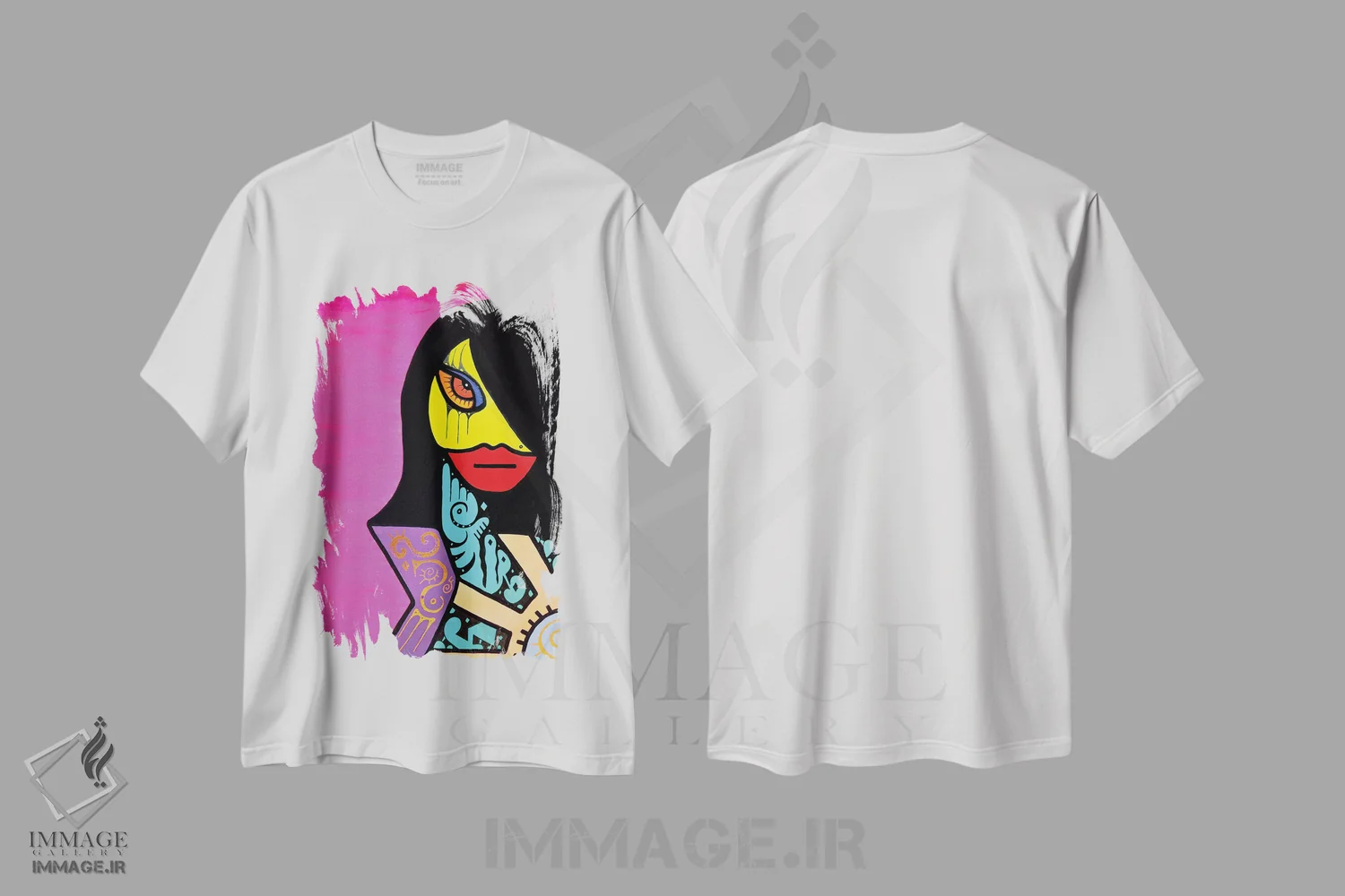 تیشرت سفید طرح دار اوا، آبستره اثر بیلی آرتیست | فروشگاه ایماژ