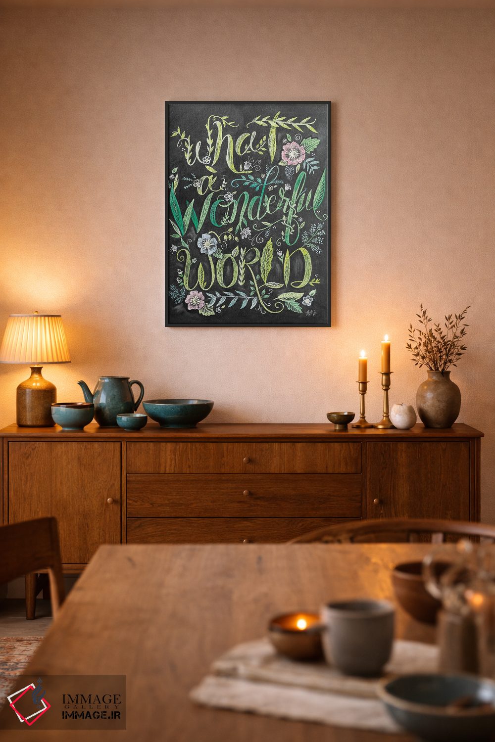 «چه دنیای شگفتانگیزی» اثرِ «لیلی و ول (برند کارت و هنر)» انتخابی مناسب برای کسانیست که از پوسترهای متنی و طراحی معاصر لذت میبرند.
