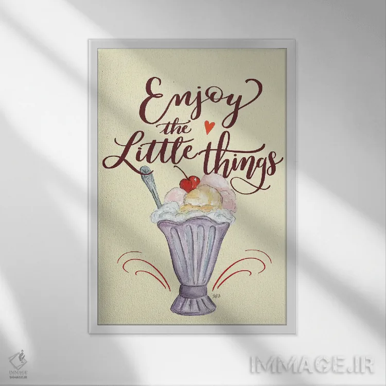 «از چیزهای کوچک لذت ببر (بستنی)» اثرِ «لیلی و ول (برند کارت و هنر)» یک گزینهی جذاب برای هدیه به دوستداران آشپزی و قهوه است.