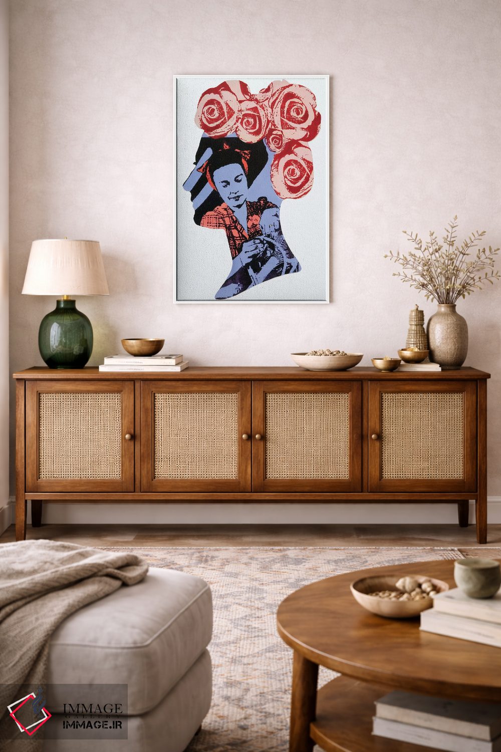 براساس پالت ترکیبی اثر، قاب تیک گرم (چوبی) پیشنهاد اول است و مشکی مات (فریم متوسط) مکمل. برای سفارشهای پروژهای با ابعاد و قابهای اختصاصی با ایماژ در تماس باشید.