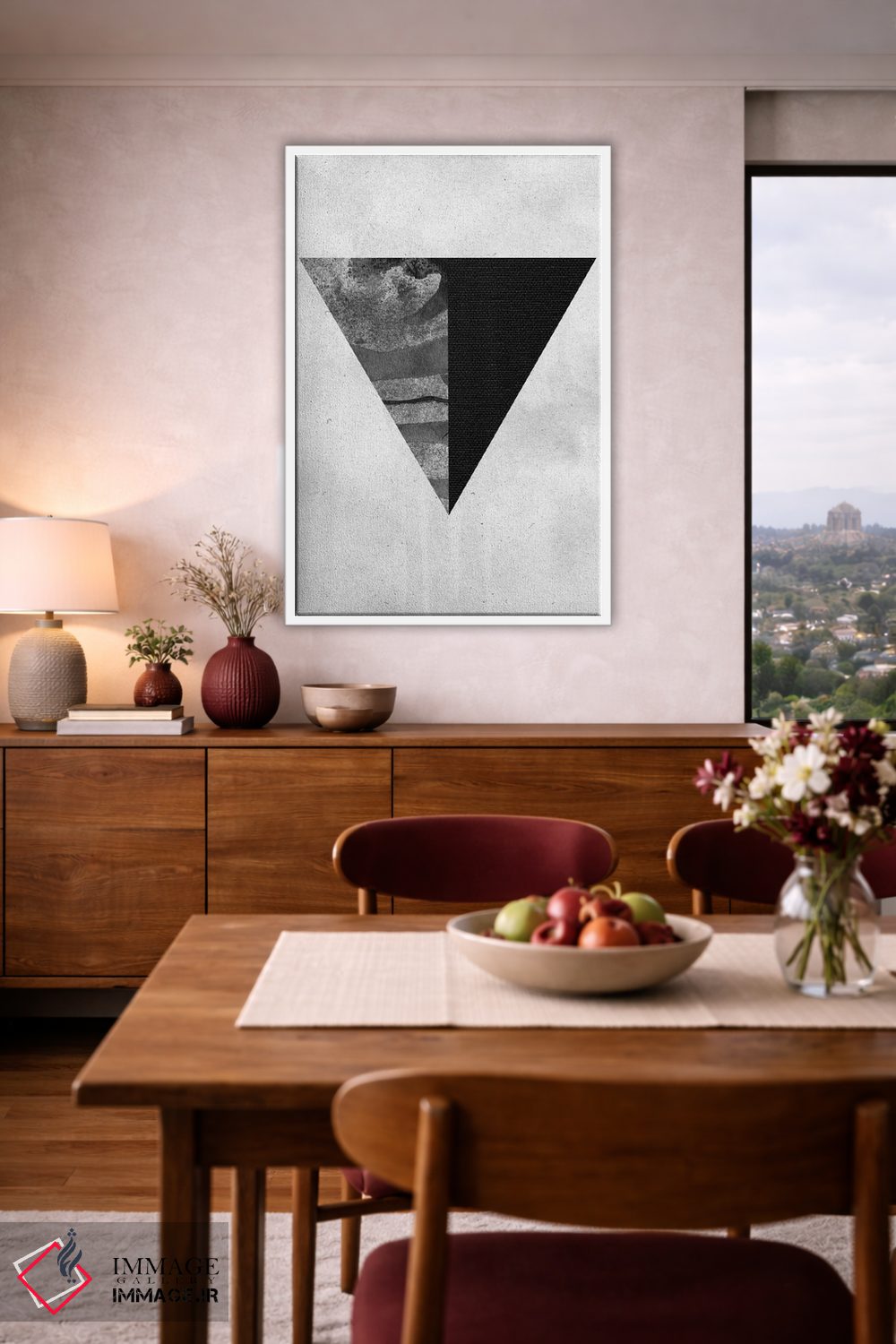 «"هندسه ۱"» اثرِ «لیمُو (نام هنری یا استودیو)» با زبان هنری، کنار رنگهای خنثی و متریالهای مدرن (بتن، فلز، چوب) خیلی خوب مینشیند.