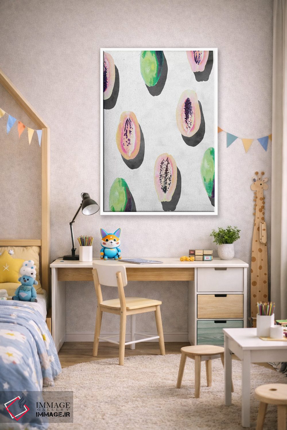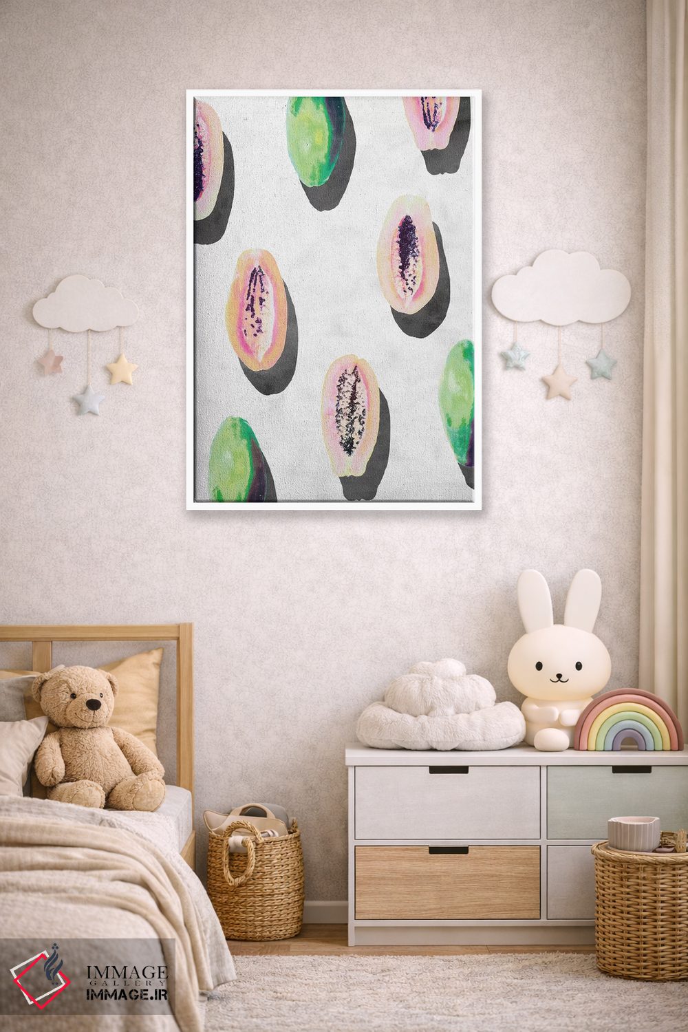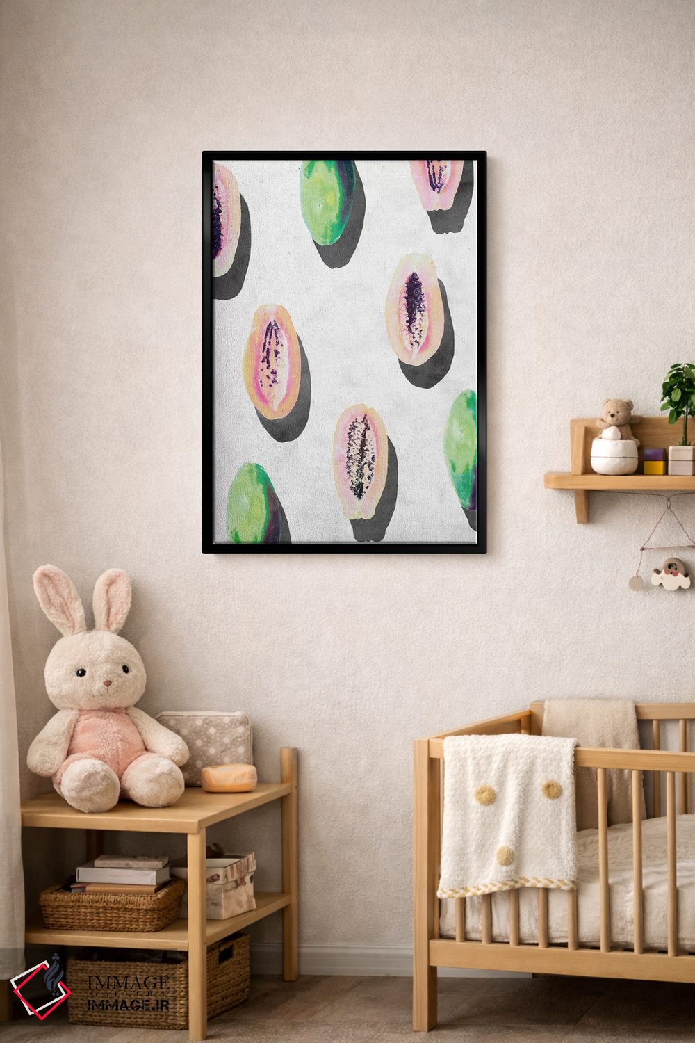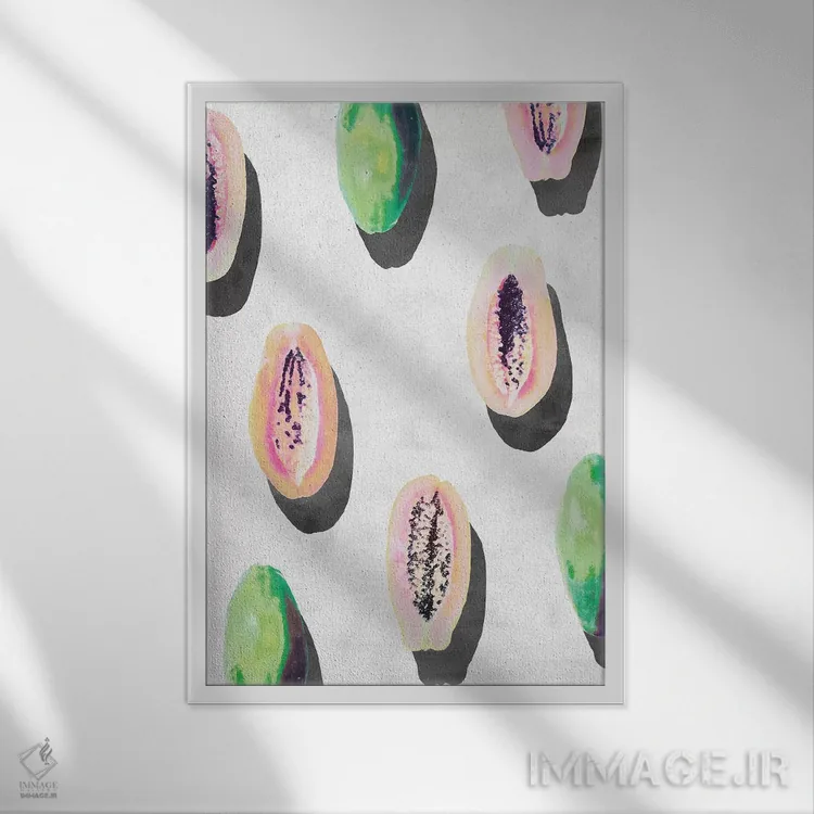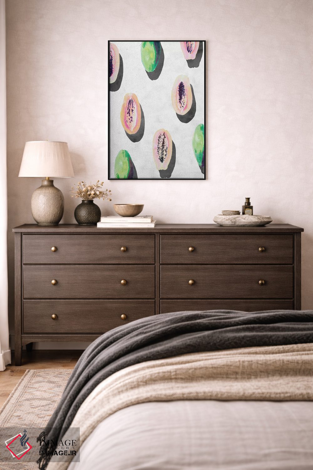 براساس پالت ترکیبی اثر، قاب تیک گرم (چوبی) پیشنهاد اول است و مشکی مات (فریم متوسط) مکمل. برای سفارشهای پروژهای با ابعاد و قابهای اختصاصی با ایماژ در تماس باشید.