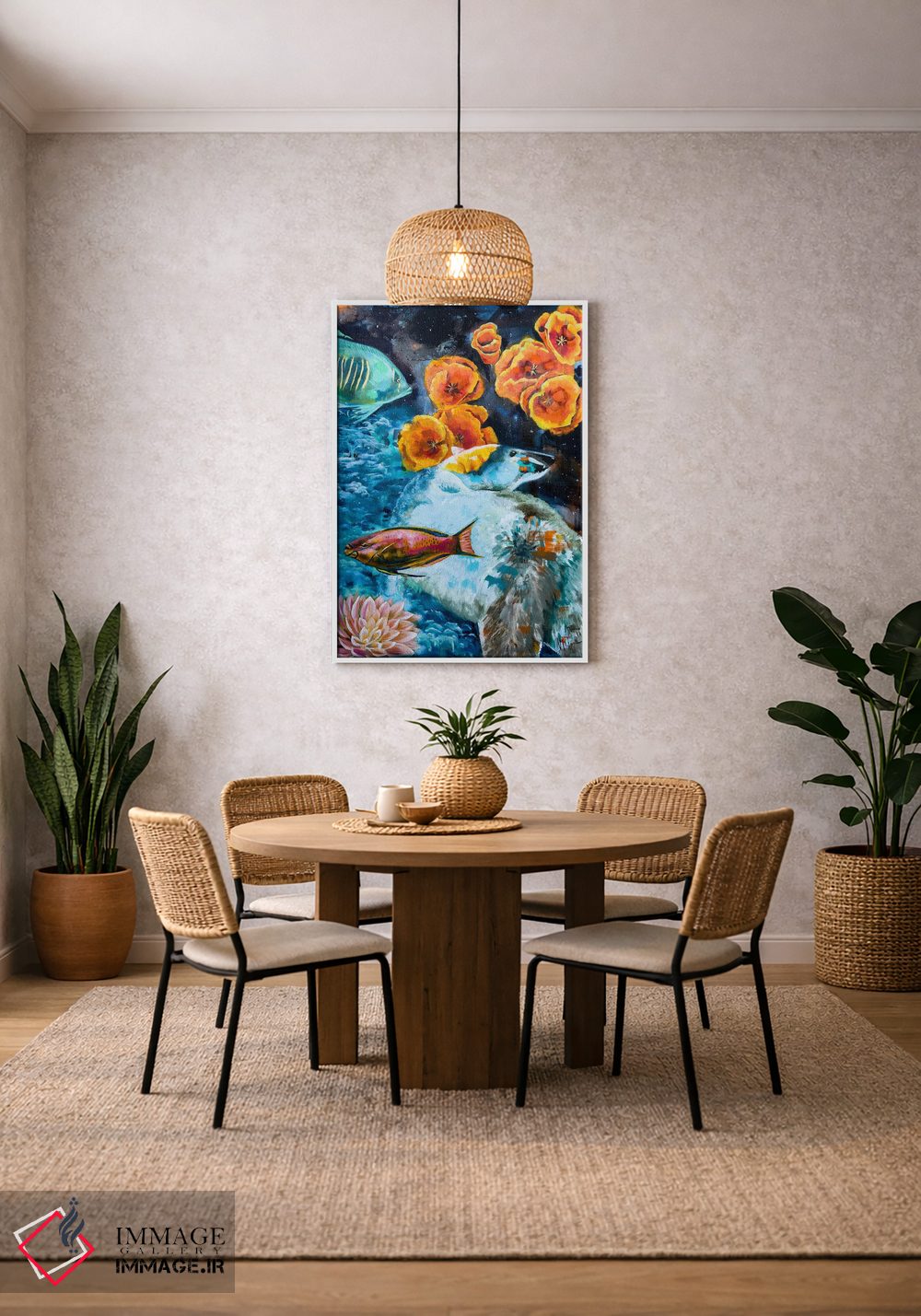 بوم گالری ایماژ طوری طراحی شده که اثر روی دیوار «پرداختشده» و حرفهای دیده شود—نه پرزرقوبرقِ بیپایه؛ بلکه دقیق و خوشپرداخت. بافت ظریف کنواس کمک میکند حس اثر هنری را در نگاه نزدیک نگه میدارد و همین «پرداخت» تفاوت را میسازد. در ارائهی آماده نصب، اثر را مرتب و یکدست روی دیوار مینشاند و نتیجه را یکدستتر میکند. برای سفارش اندازه یا قاب متفاوت، تیم ایماژ راهنمایی میکند تا انتخاب نهایی هماهنگتر باشد؛ و اگر بخواهید، میتوان چیدمان را برای گالریوال هم پیشنهاد داد.