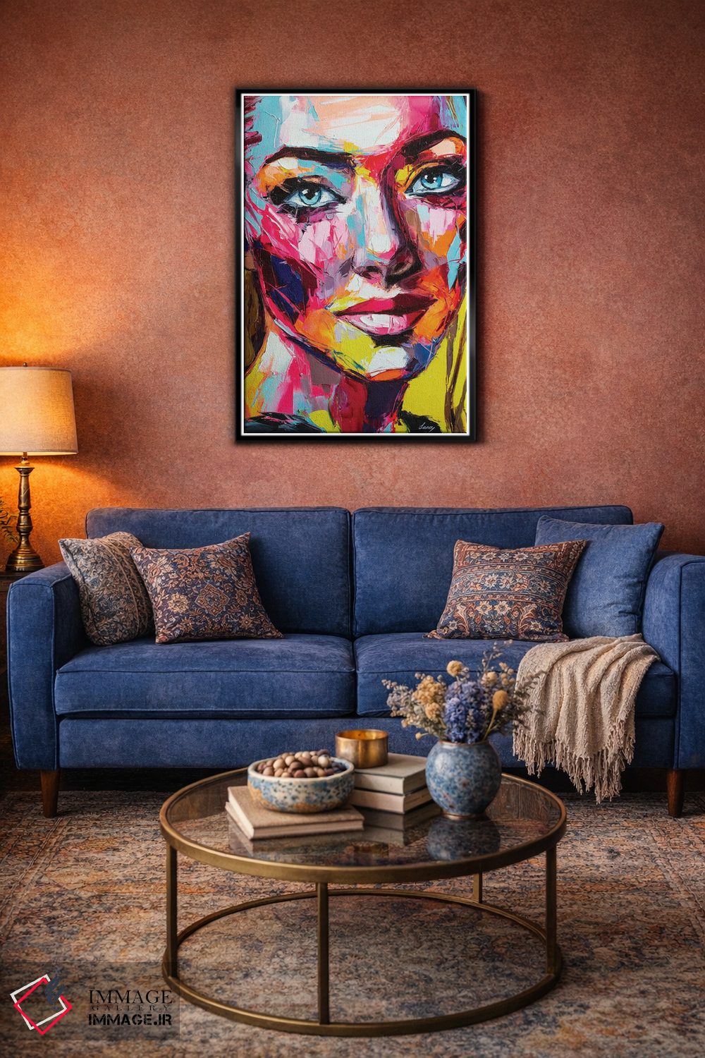 براساس پالت ترکیبی اثر، قاب تیک گرم (چوبی) پیشنهاد اول است و مشکی مات (فریم متوسط) مکمل. برای سفارشهای پروژهای با ابعاد و قابهای اختصاصی با ایماژ در تماس باشید.
