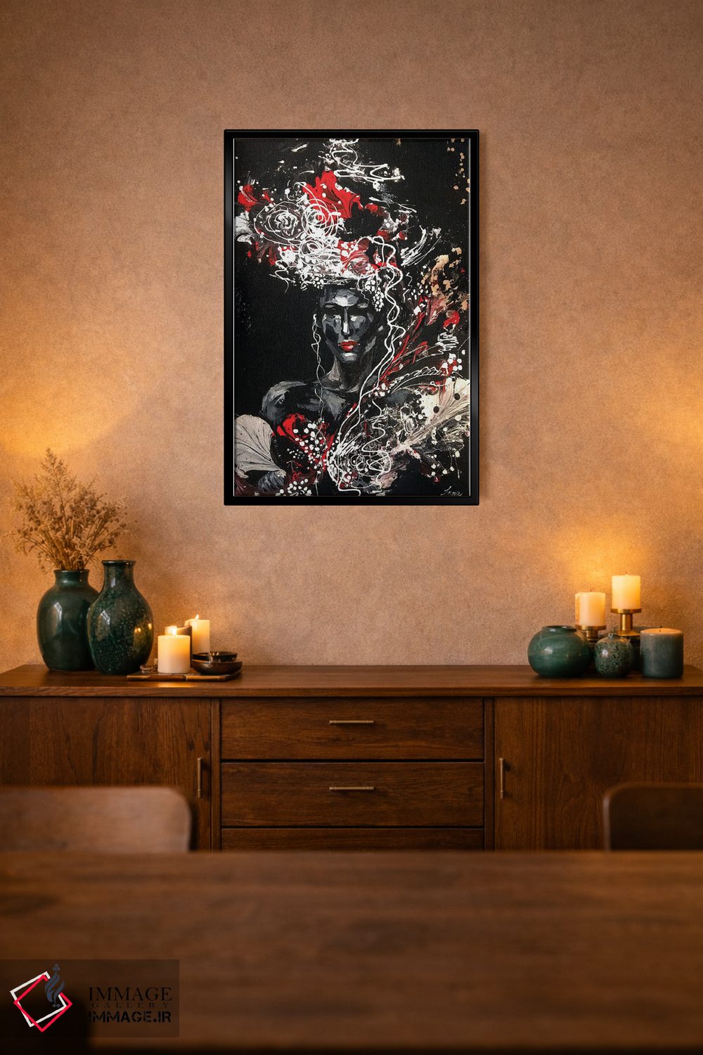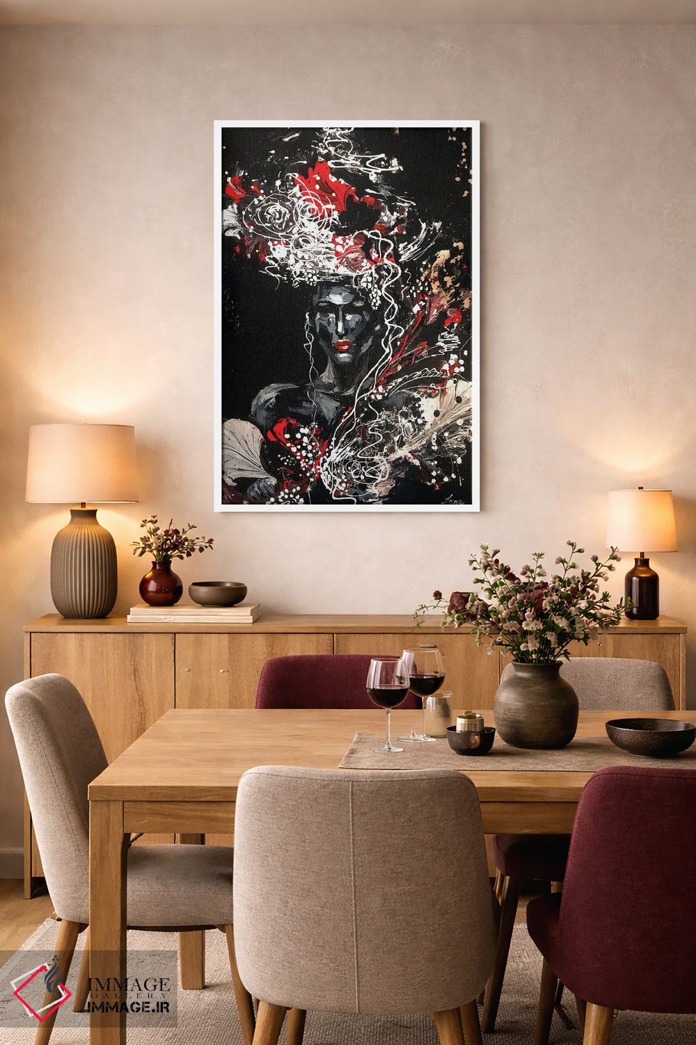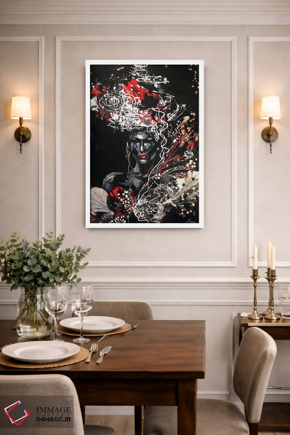 بوم گالری ایماژ طوری طراحی شده که اثر روی دیوار «پرداختشده» و حرفهای دیده شود—نه پرزرقوبرقِ بیپایه؛ بلکه دقیق و خوشپرداخت. با بافت ظریف کنواس، حس اثر هنری را در نگاه نزدیک نگه میدارد و برای فضاهای رسمیتر هم انتخاب مطمئنی است. در ارائهی آماده نصب، برای یک ارائهی حرفهای ضروری است بدون اغراق؛ فقط دقیقتر. حاصل کار، یک تابلو خوشنشین است که هم از دور اثرگذار است و هم از نزدیک خوشخوان؛ و اگر بخواهید، میتوان چیدمان را برای گالریوال هم پیشنهاد داد. اگر یک اکسنت رنگی کوچک در اکسسوریها تکرار شود، هماهنگی فضا کاملتر میشود.
