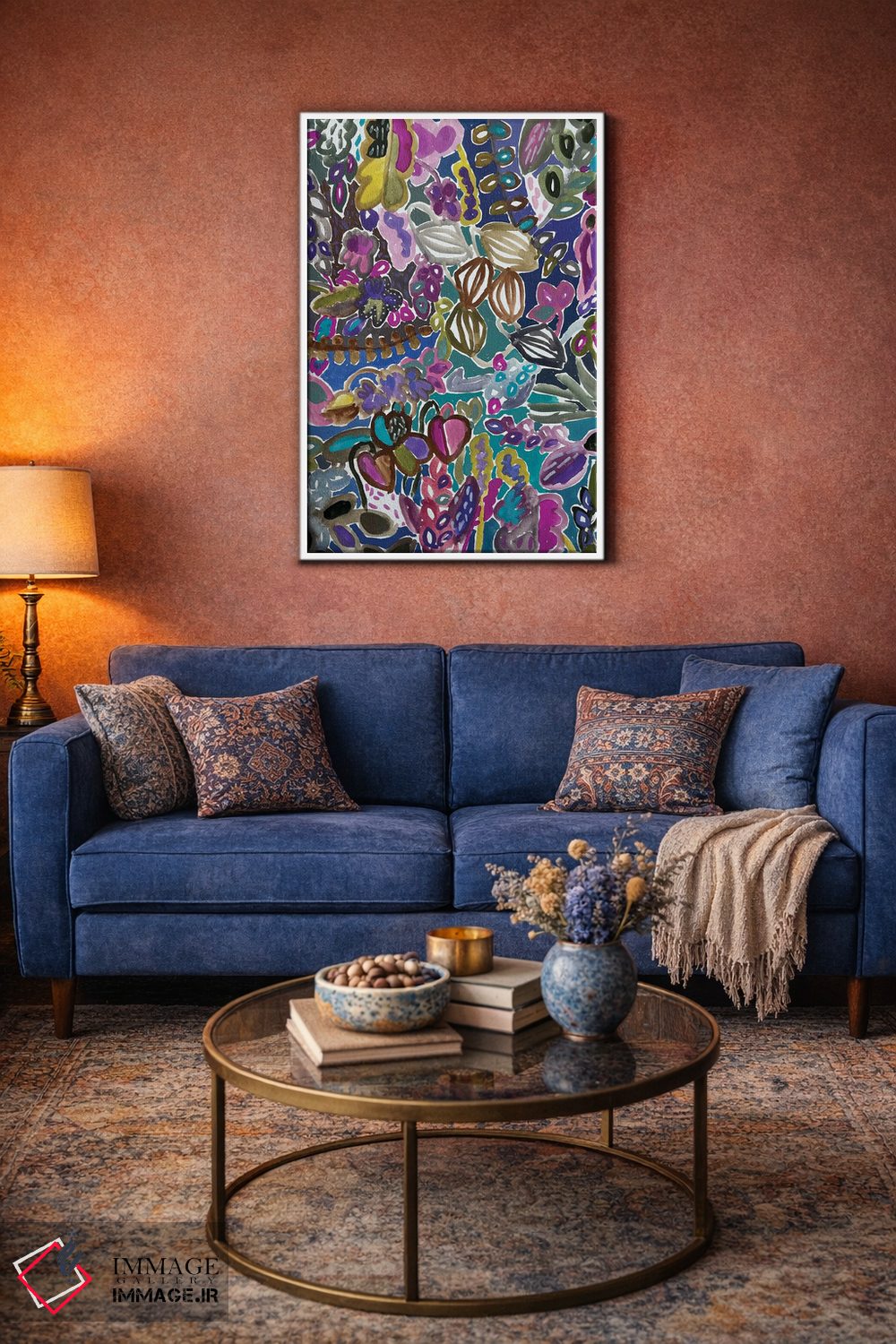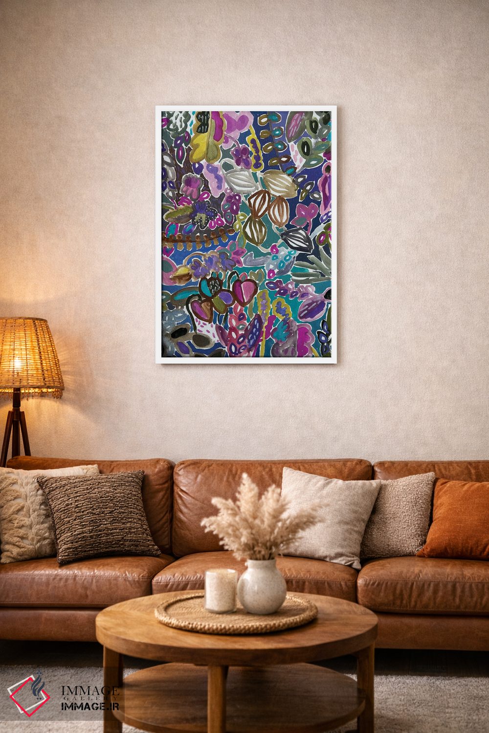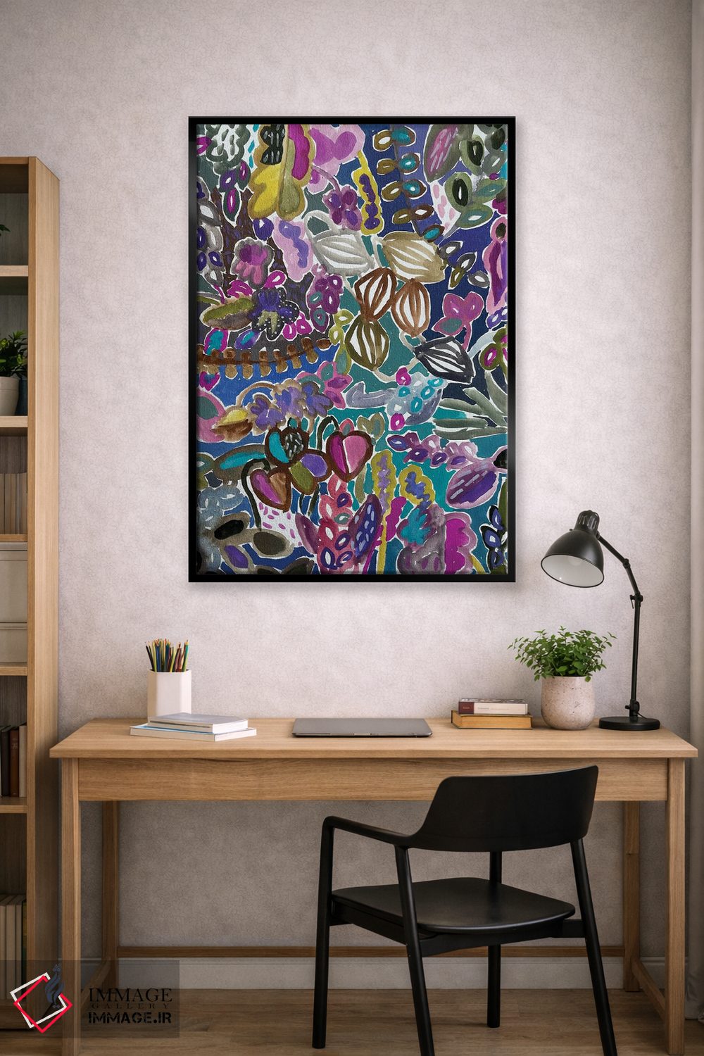 براساس پالت ترکیبی اثر، قاب تیک گرم (چوبی) پیشنهاد اول است و مشکی مات (فریم متوسط) مکمل. برای سفارشهای پروژهای با ابعاد و قابهای اختصاصی با ایماژ در تماس باشید.