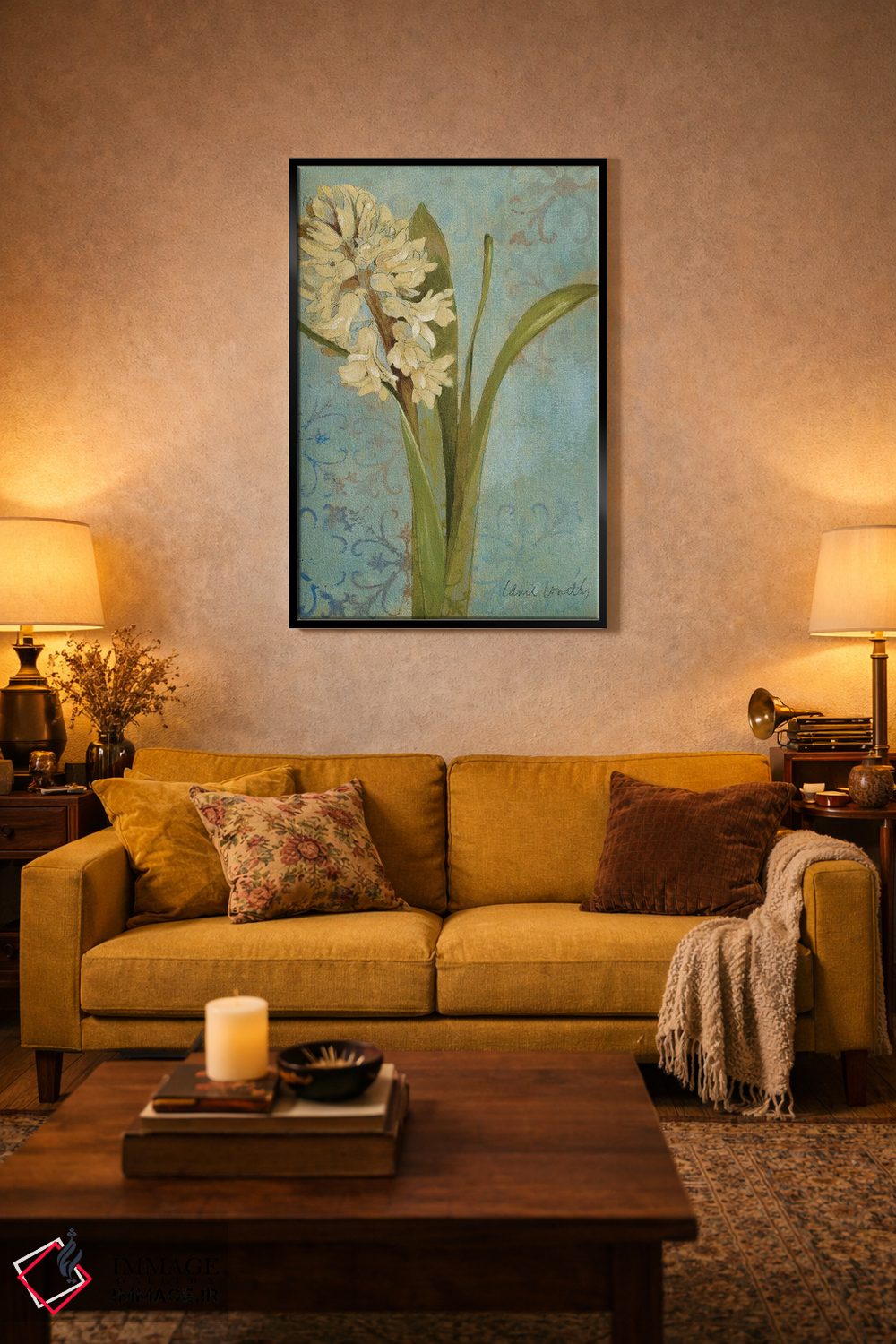 اگر میخواهید اثر برجستهتر شود، زرد را در فرش یا پرده (بهصورت خیلی کم) برگردانید تا فضا حرفهایتر به نظر برسد. انتخاب قاب هم میتواند این اکسنت را تقویت کند.