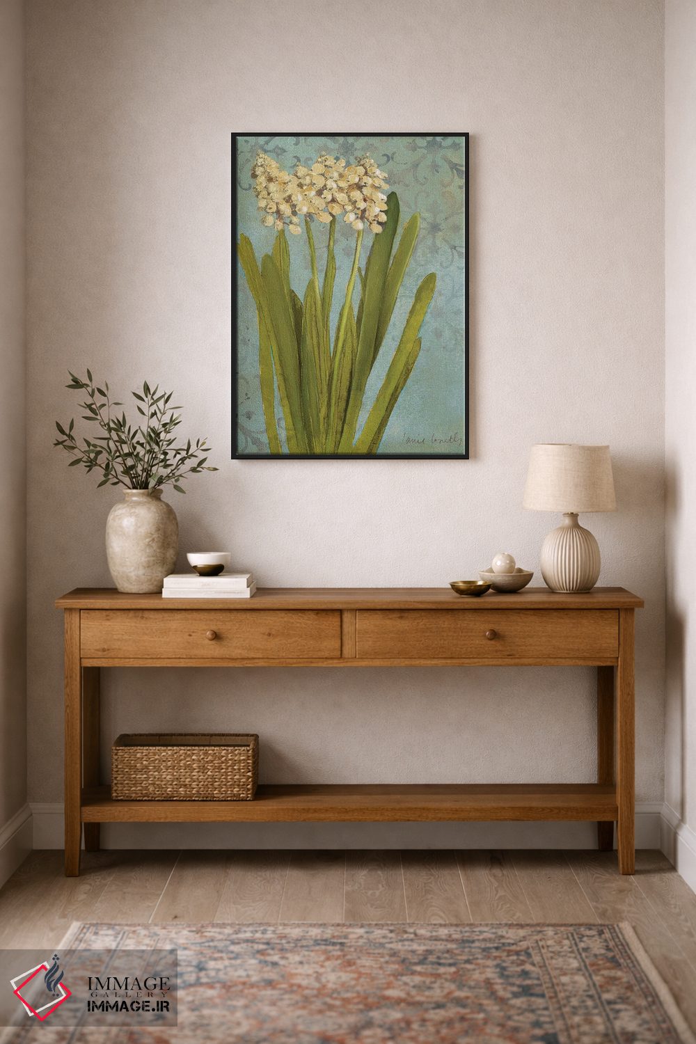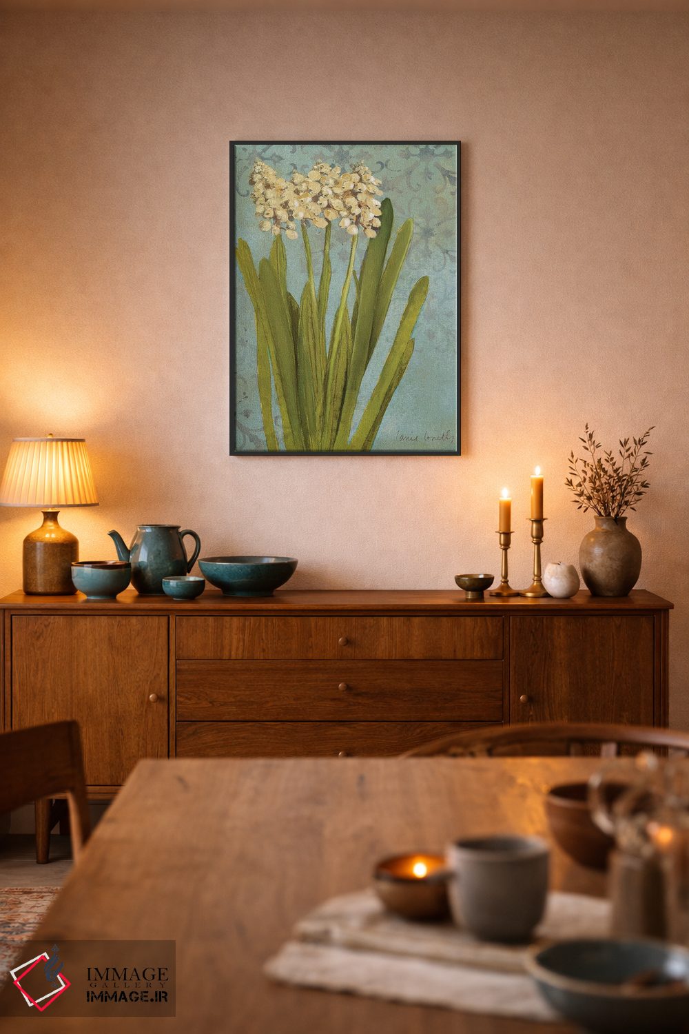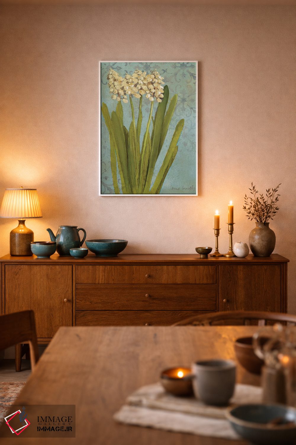 «"سنبل روی فیروزهای II"» اثرِ «لِینی لورث» مثل یک نفس تازه است؛ در کنار چوب و پارچههای روشن، عالی مینشیند؛ برای کافهها و فضاهای آرام انتخابی خوشسلیقه است. همیشه بهروز میماند و با فصلها خوب کنار میآید.