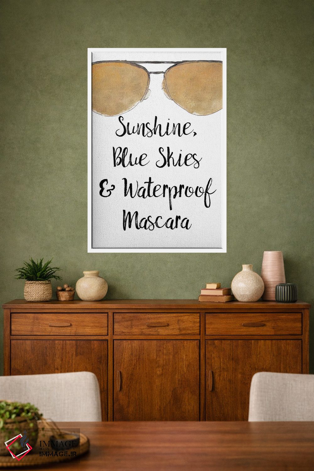 براساس پالت گرم اثر، قاب تیک گرم (چوبی) پیشنهاد اول است و مشکی مات (فریم متوسط) مکمل.