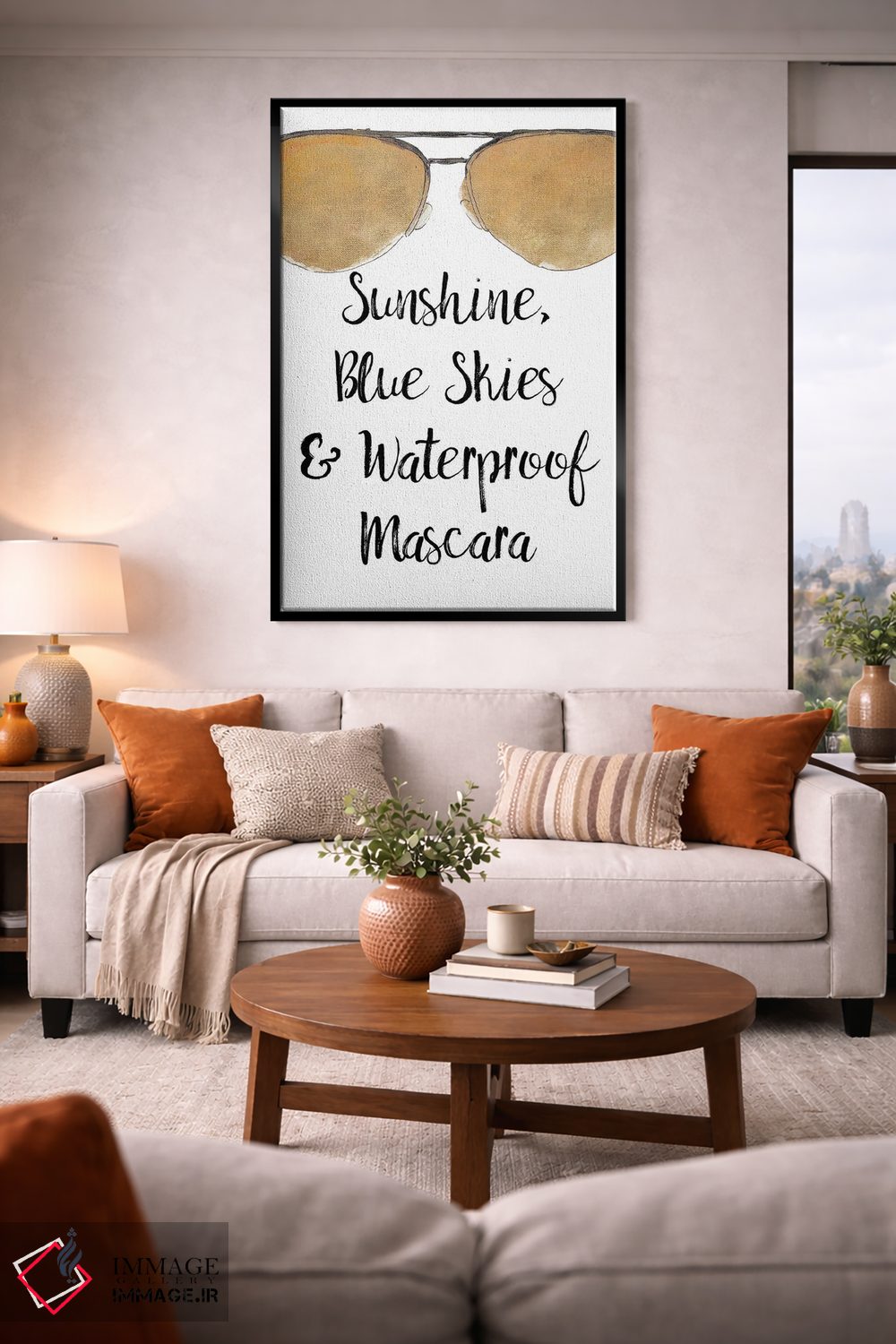 براساس پالت گرم اثر، قاب تیک گرم (چوبی) پیشنهاد اول است و مشکی مات (فریم متوسط) مکمل. برای سفارشهای پروژهای با ابعاد و قابهای اختصاصی با ایماژ در تماس باشید.