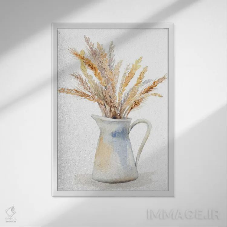 تابلو دکوراتیو "گندم در پارچ" اثر لینی لورث - نمای قاب‌دار سفید