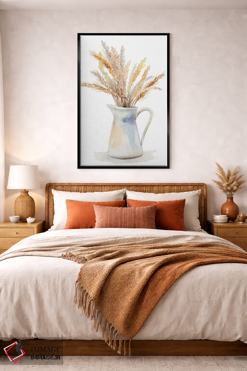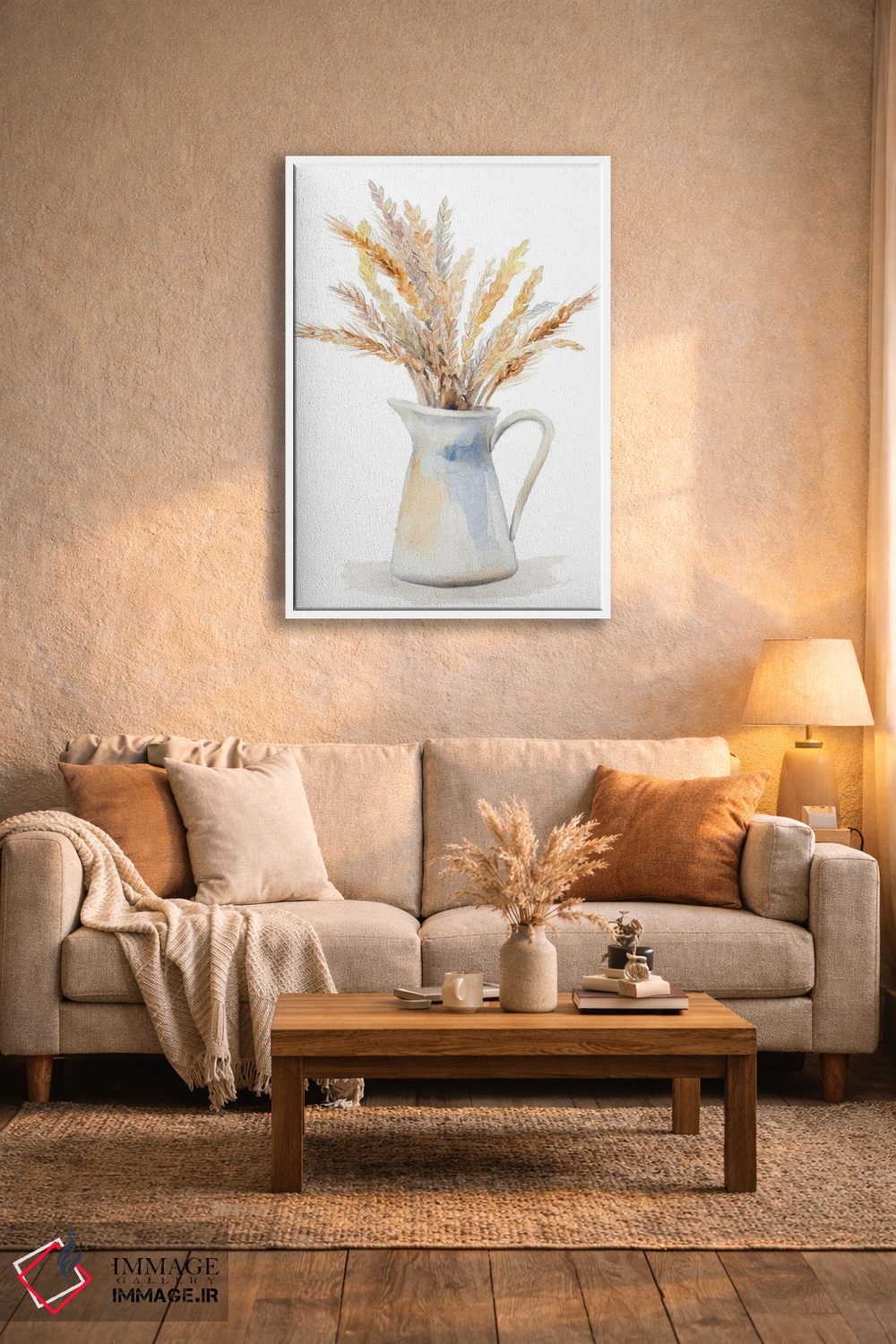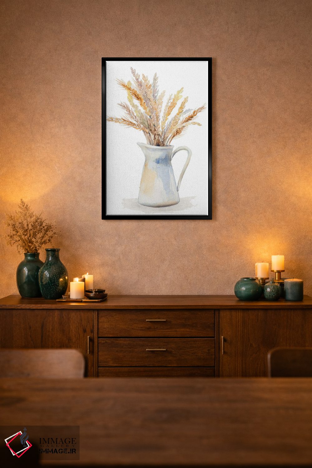 تابلو دکوراتیو "گندم در پارچ" اثر لینی لورث - نمای روبه‌رو روی دیوار