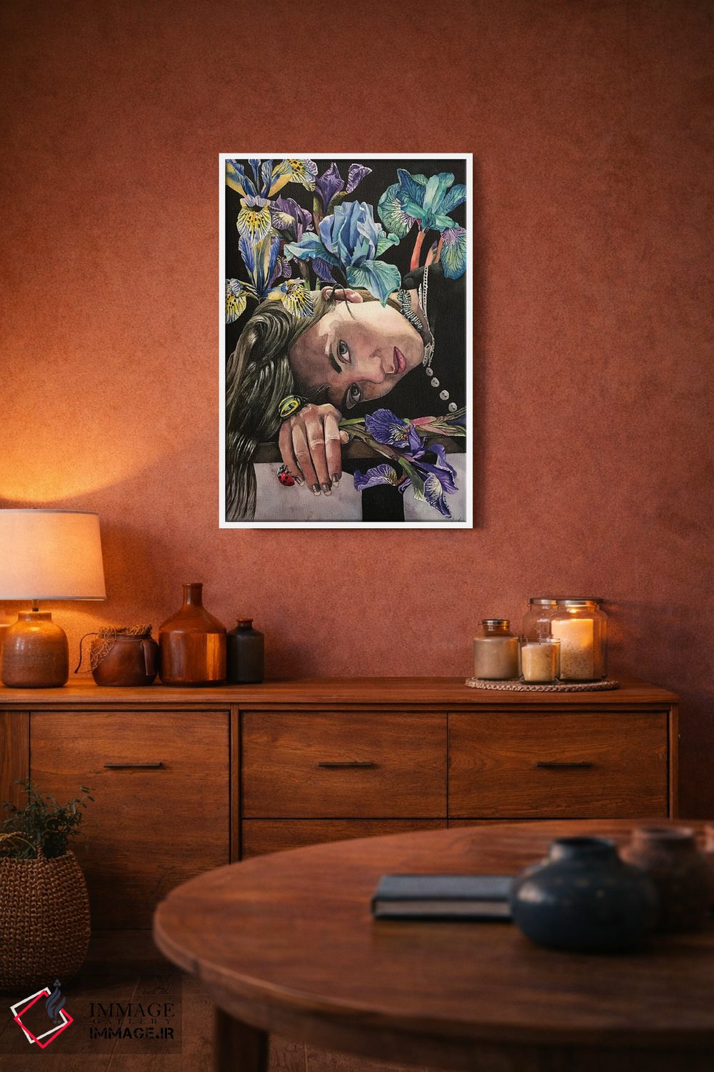 براساس پالت ترکیبی اثر، قاب تیک گرم (چوبی) پیشنهاد اول است و مشکی مات (فریم متوسط) مکمل. برای سفارشهای پروژهای با ابعاد و قابهای اختصاصی با ایماژ در تماس باشید.