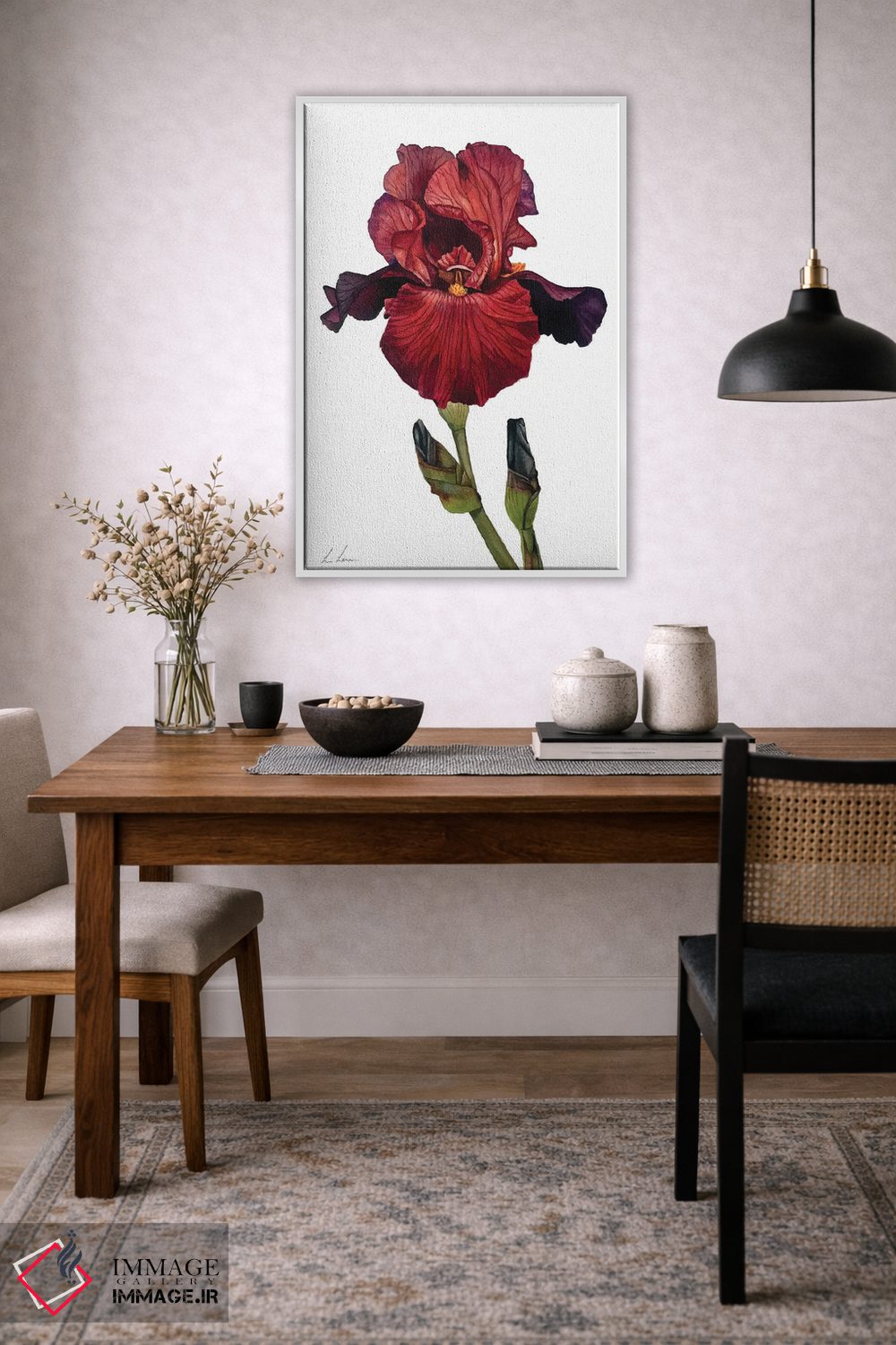 برای اتاق خواب و نشیمنهای آرام، «"زنبق قرمز"» اثرِ «لیزا لنون» حس طراوت را بدون شلوغی وارد اتاق میکند؛ برای هدیه دادن انتخابی خوشسلیقه است. اگر دنبال «زیباییِ بیصدا» هستید، این اثر همان حس را دارد.