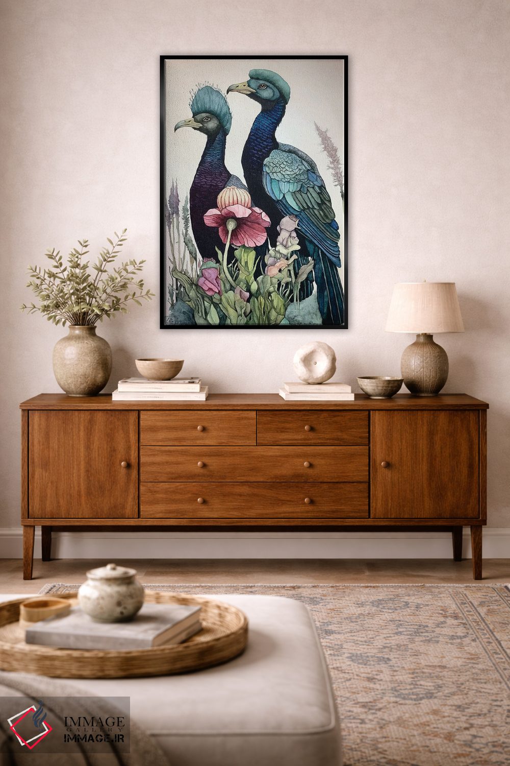 «"پرندگان سر آبی"» اثرِ «لیزا لنون» میتواند مثل یک امضای بامزه اما متین عمل کند؛ برای دکورهای مدرن و مینیمال پیشنهاد میشود. اگر دنبال اثر دوستداشتنیِ «بیغلو» هستید، این یکی دقیق مینشیند.