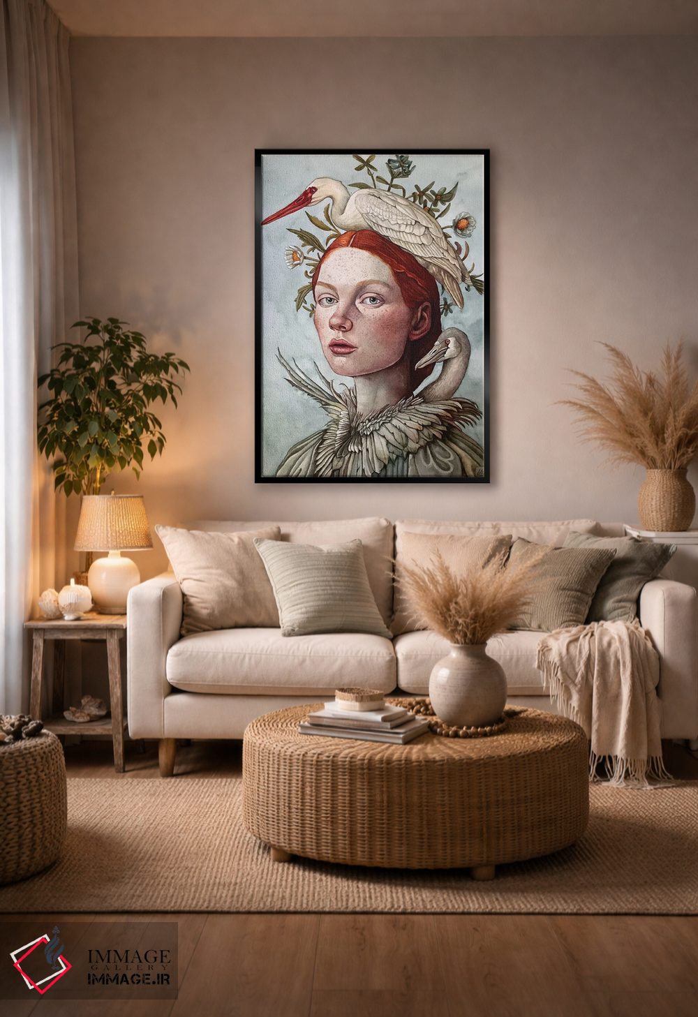براساس پالت گرم اثر، قاب تیک گرم (چوبی) پیشنهاد اول است و مشکی مات (فریم متوسط) مکمل. برای سفارشهای پروژهای با ابعاد و قابهای اختصاصی با ایماژ در تماس باشید.