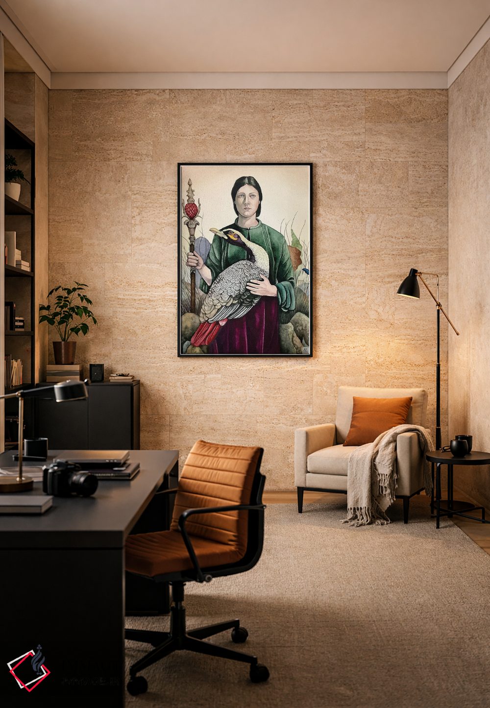 براساس پالت گرم اثر، قاب بلوط روشن (چوبی) پیشنهاد اول است و استخوانی ملایم مکمل. برای سفارشهای پروژهای با ابعاد و قابهای اختصاصی با ایماژ در تماس باشید.