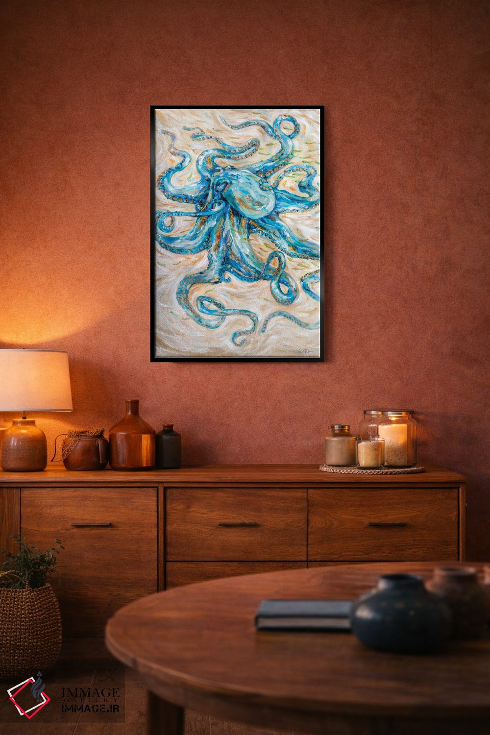 تابلو دکوراتیو "هشت پا فیروزه ای" اثر لیندا اولسن