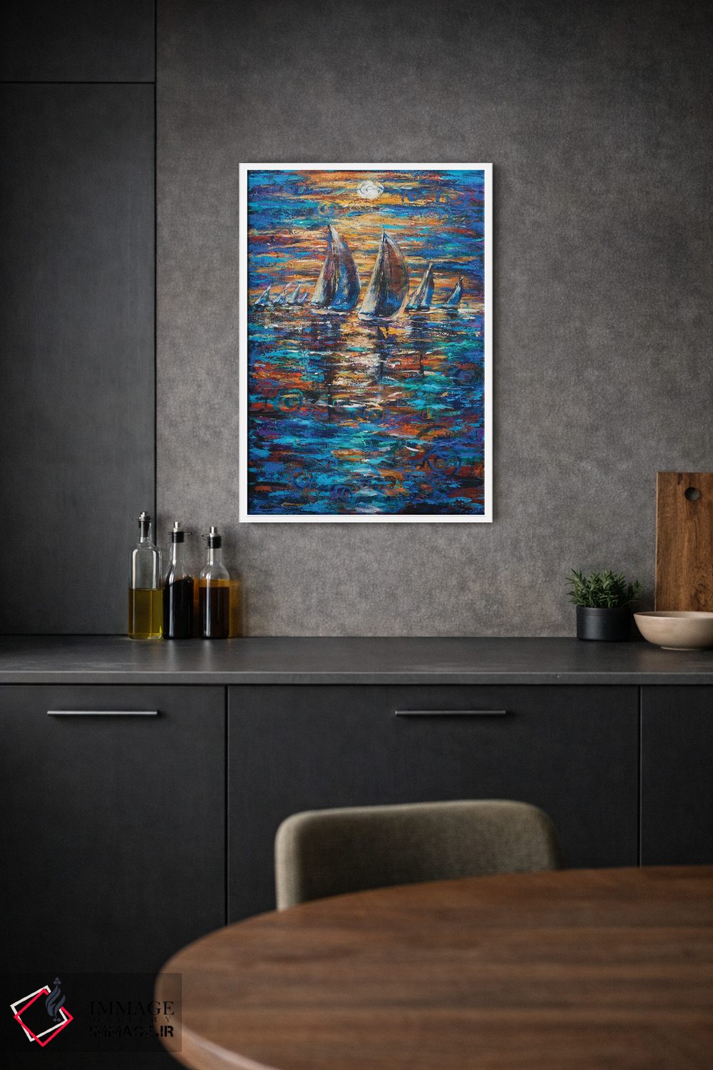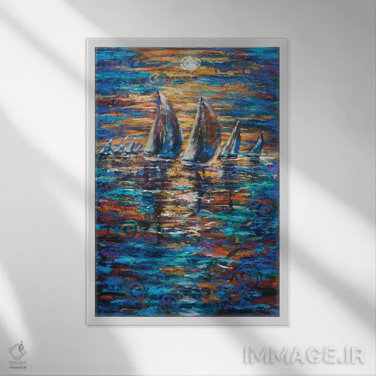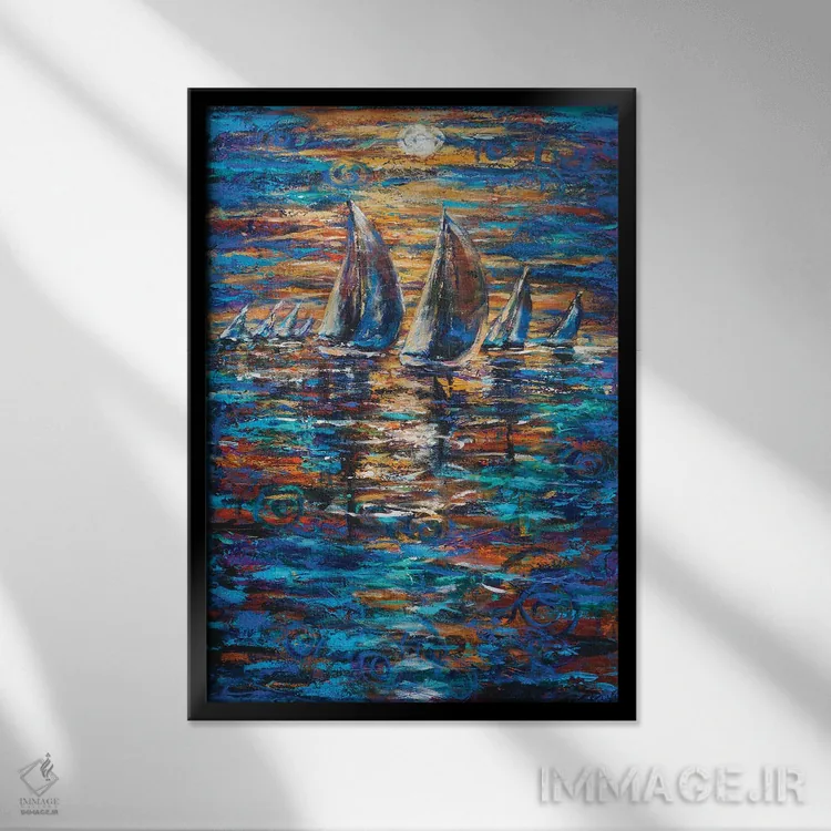 براساس پالت ترکیبی اثر، قاب تیک گرم (چوبی) پیشنهاد اول است و مشکی مات (فریم متوسط) مکمل. برای سفارشهای پروژهای با ابعاد و قابهای اختصاصی با ایماژ در تماس باشید.